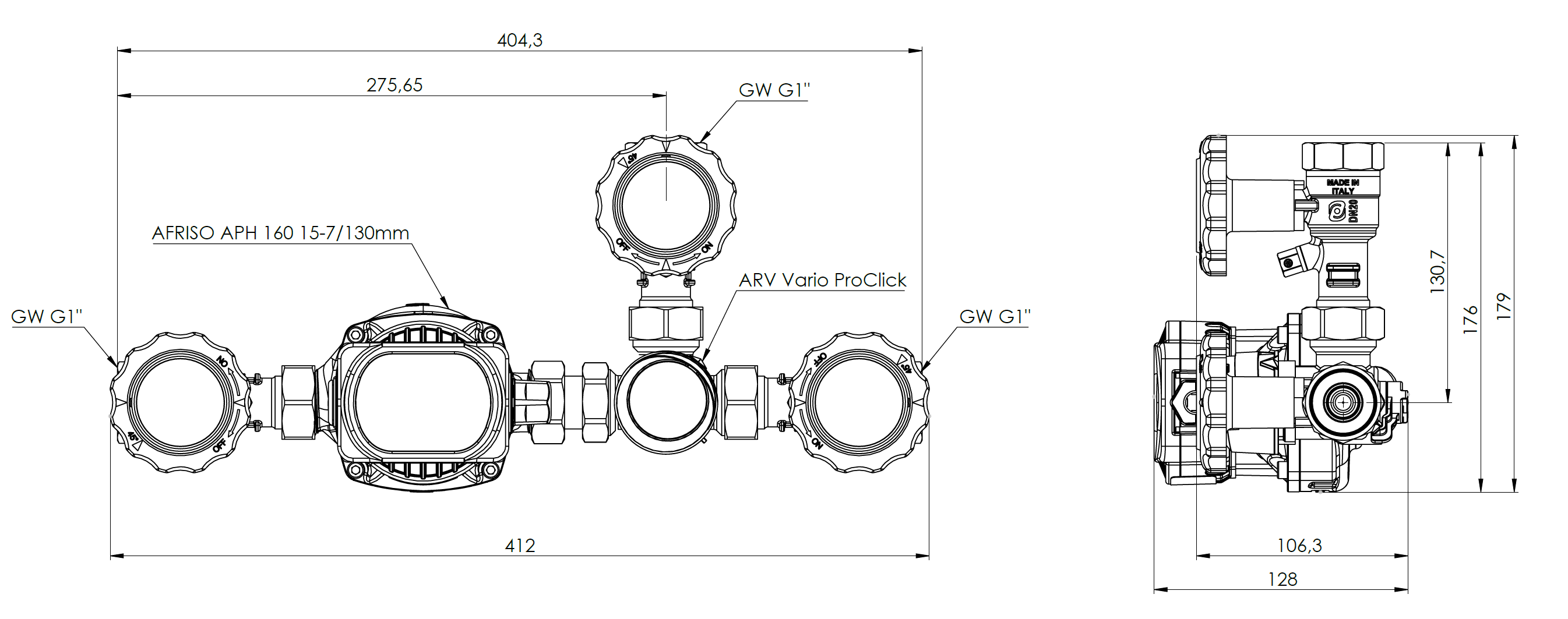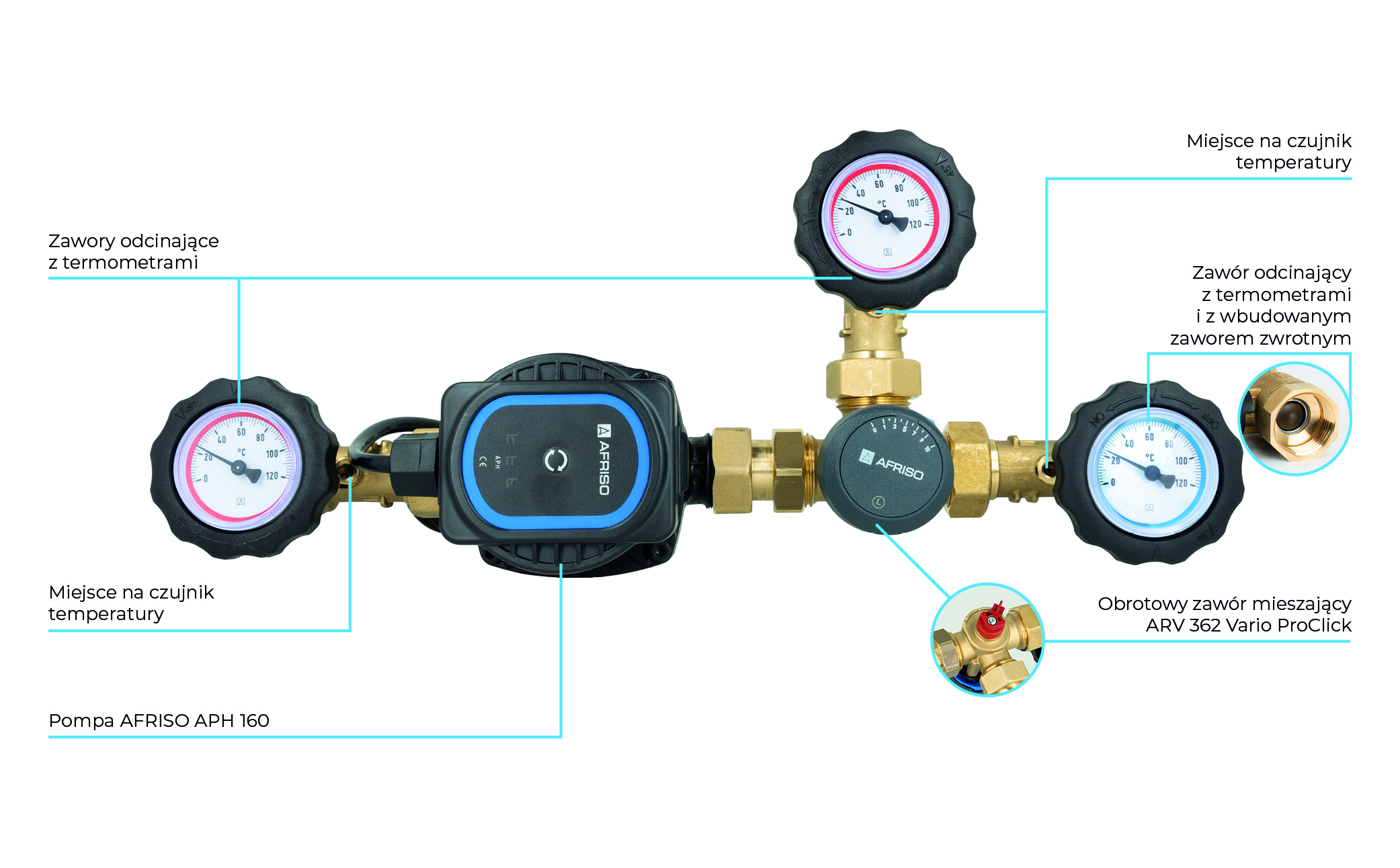 Grupa pompowa AFRISO BRA 130 AP GW 1'' Kvs6.3 AFRISO APH 160 15-7/130 mm