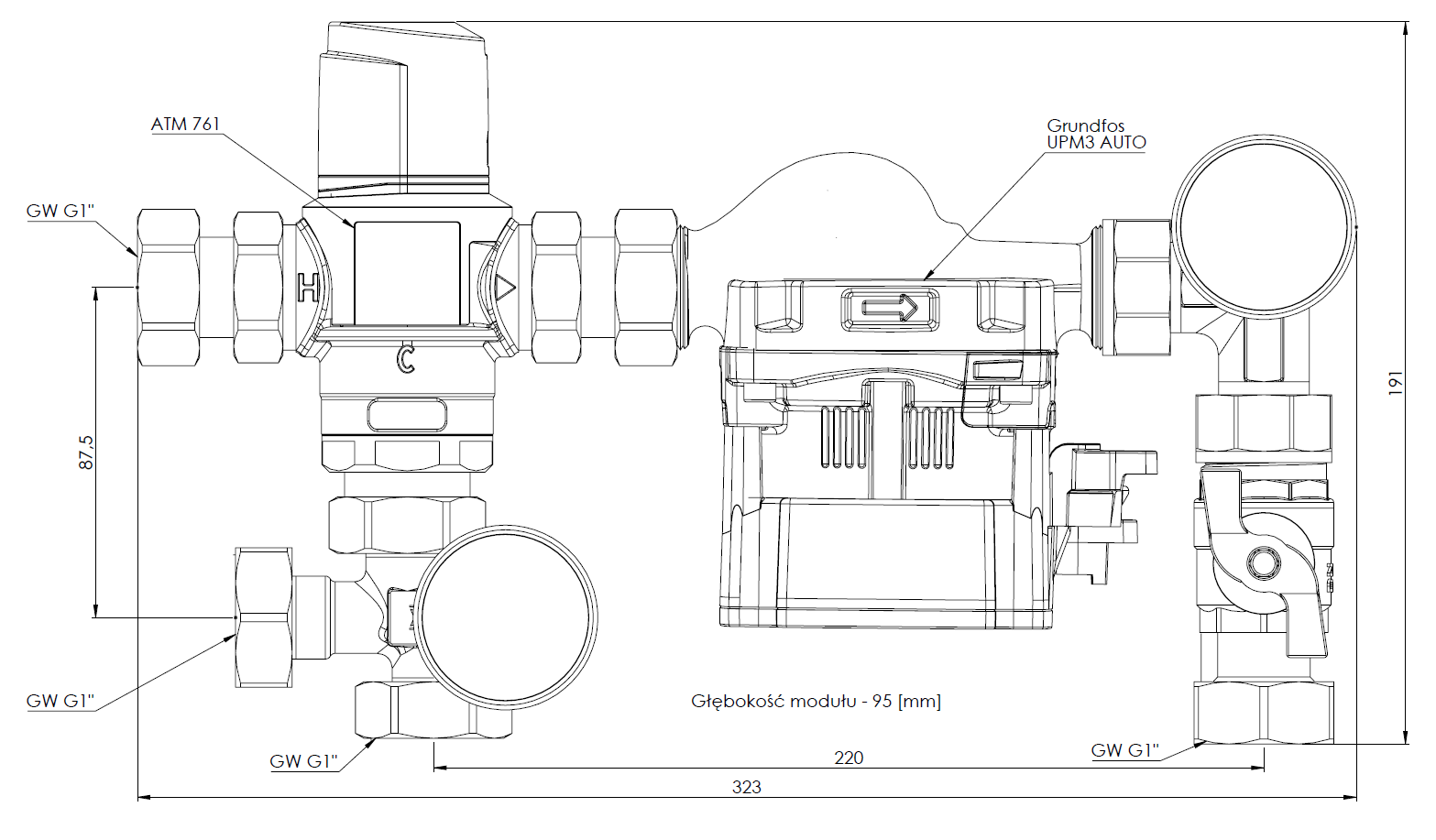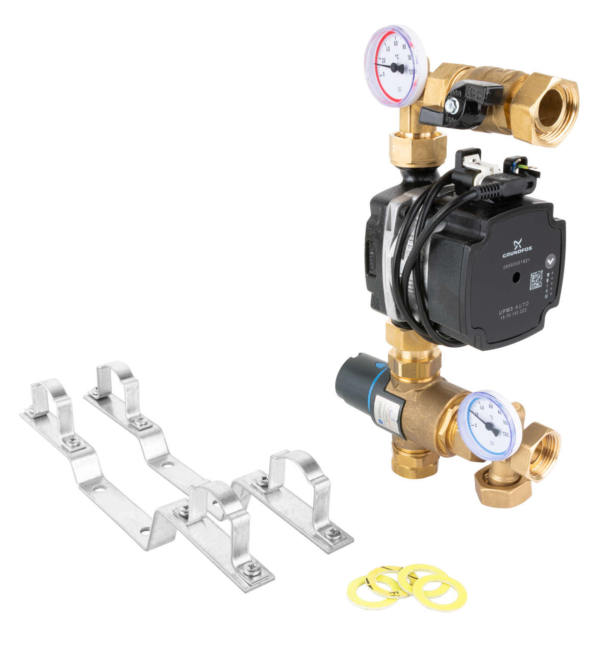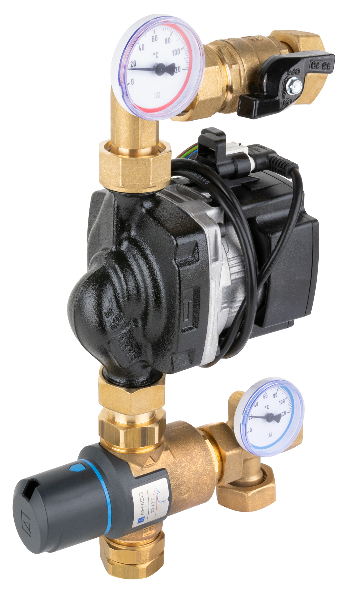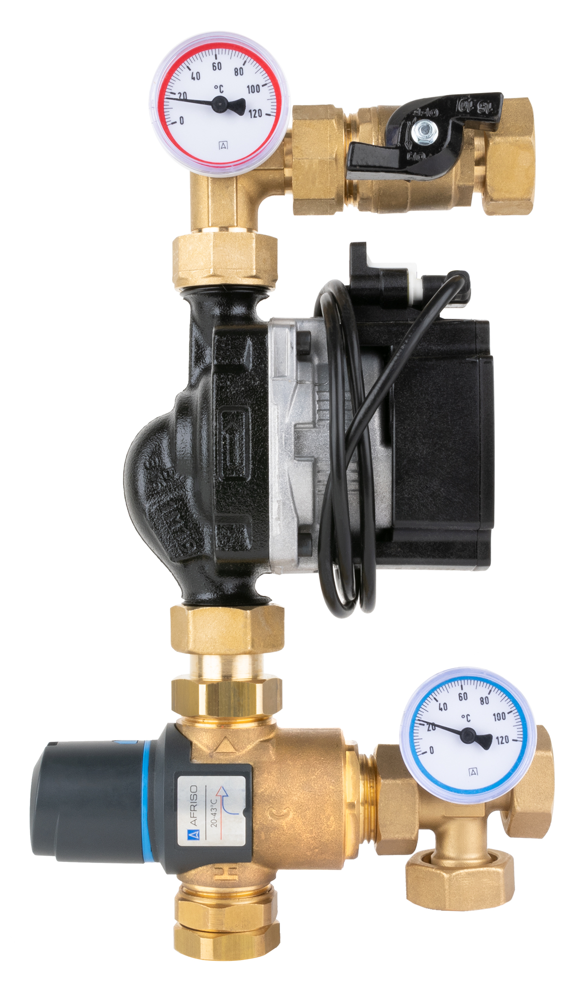 Grupa pompowa AFRISO BTU 502 nakrętka x nakrętka 1'' x 1'', z zaworem mieszającym, z pompą obiegową Grunfos UPM3 Auto