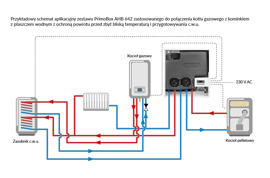 Stosowany do połączenia dwóch różnych źródeł ciepła poprzez oddzielanie ich obiegów za pomocą wymiennika płytowego.Montowany na lub w ścianie w pobliżu źródła ciepła.