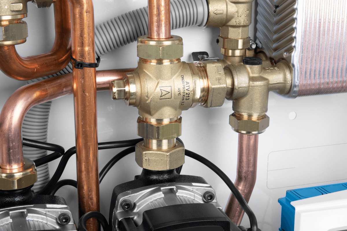 Posiada wbudowany zawór temperaturowy *ATV* 213 do ochrony źródła ciepła na paliwo stałe przed zbyt niską temperaturą powrotu.