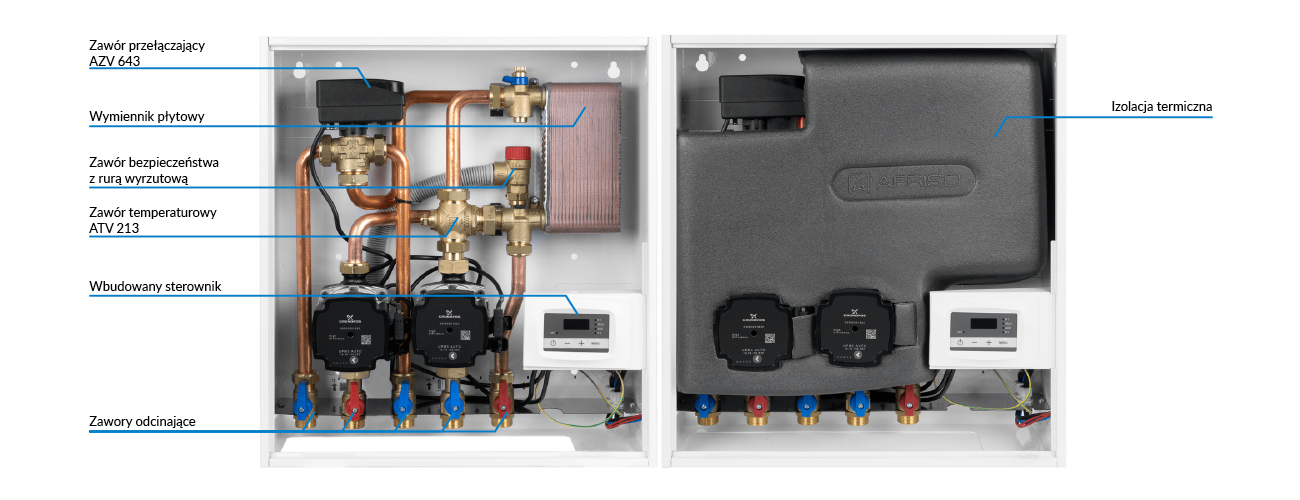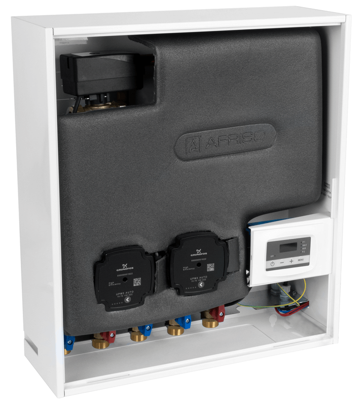 Grupa pompowa AFRISO PrimoBox AHB 642 GZ x GW 3/4'' x 3/4'', z zaworem termostatycznym, z izolacją, z pompą obiegową 2x Grunfos UPM3 Auto