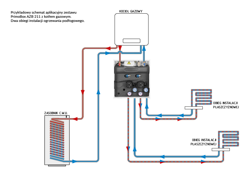 Opcjonalnie można połączyć go z zestawem separacyjnym **PrimoBox AHB** i stworzyć kolumnę grzewczą łączącą 2 źródła ciepła.