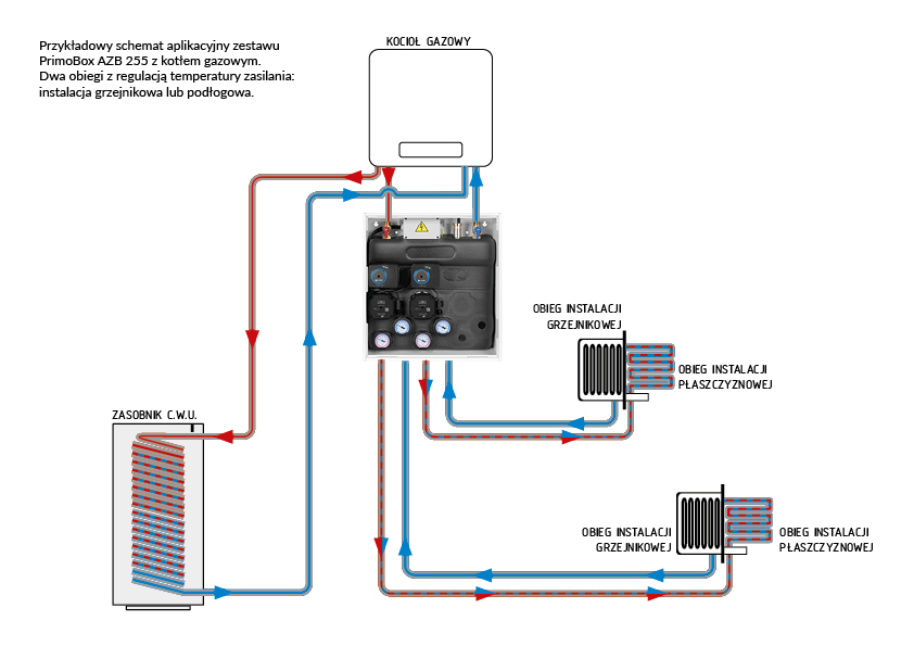Opcjonalnie można połączyć go z zestawem separacyjnym **PrimoBox AHB** i stworzyć kolumnę grzewczą łączącą 2 źródła ciepła.