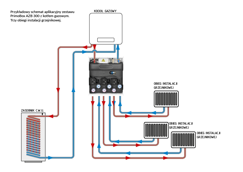 Opcjonalnie można połączyć go z zestawem separacyjnym **PrimoBox AHB** i stworzyć kolumnę grzewczą łączącą 2 źródła ciepła.