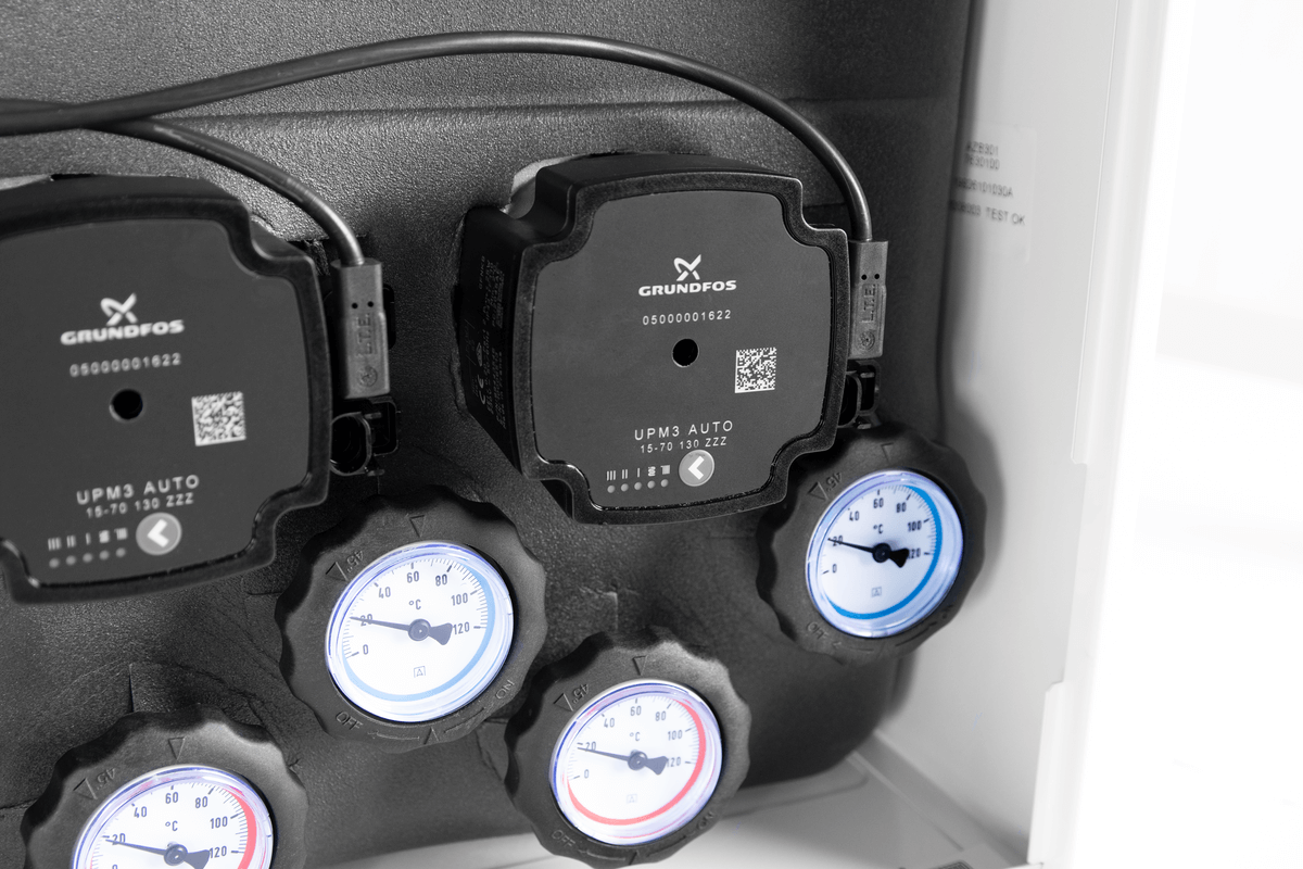 Wyposażony w pompy Grundfos UPm³.