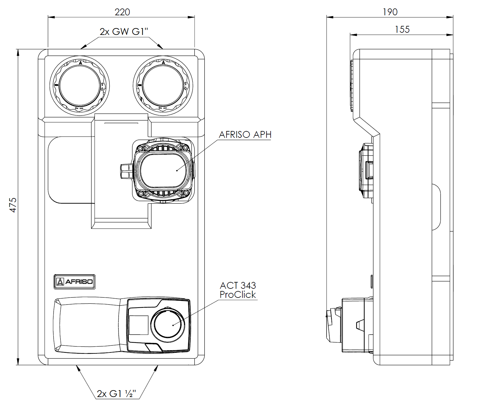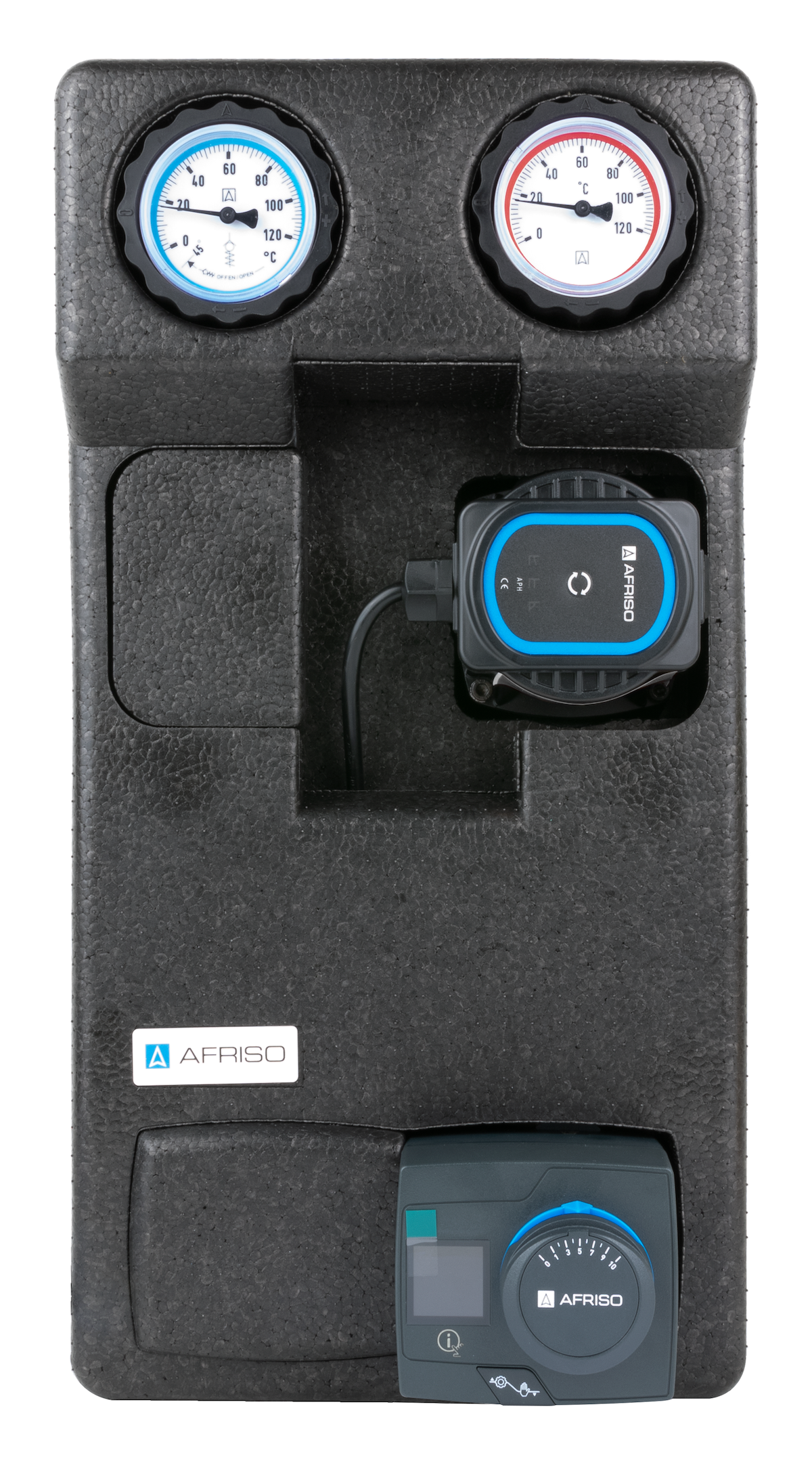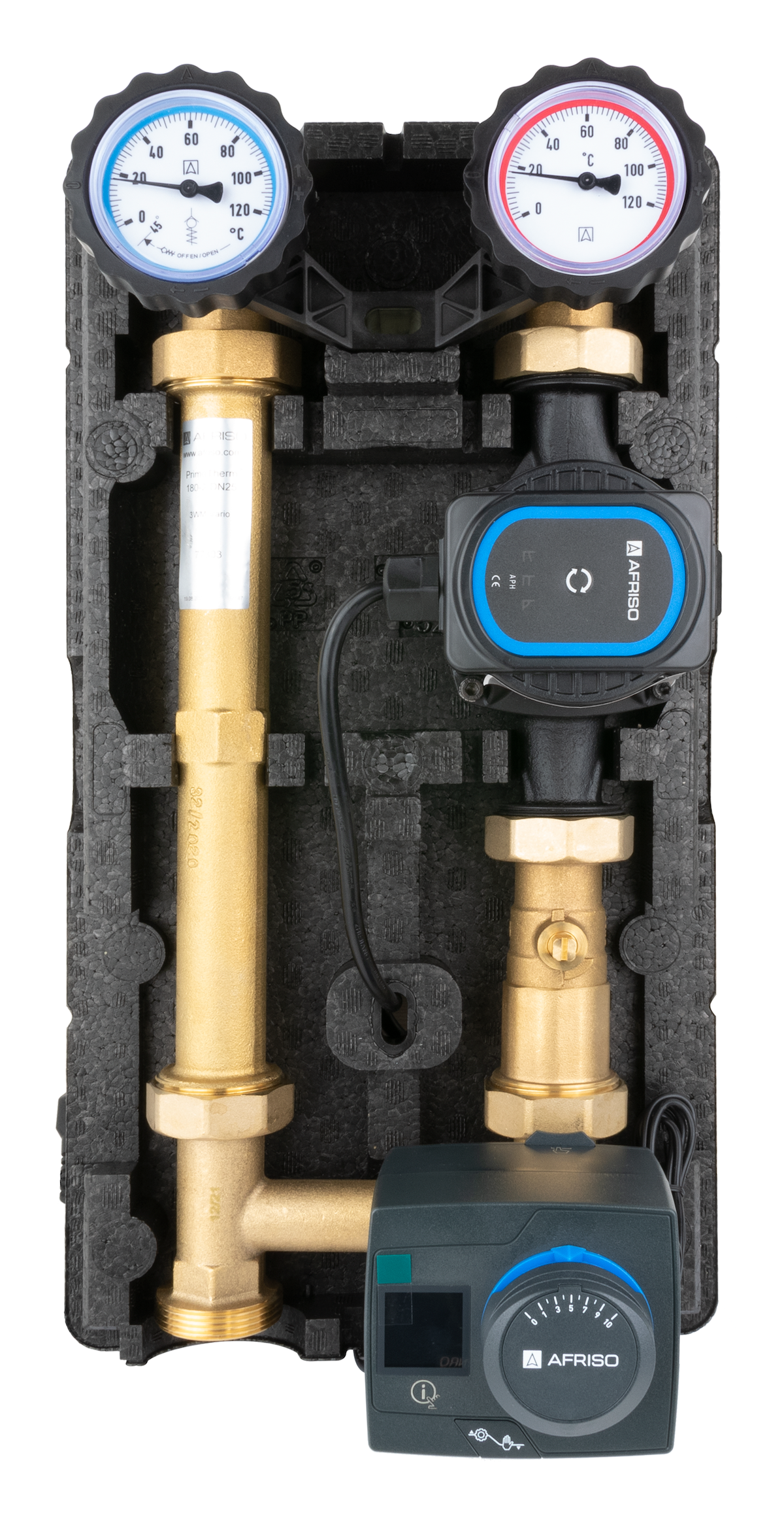 Grupa pompowa AFRISO PrimoTherm 180-2 AP DN 25 3-WM-R Vario GZ x GW 1 1/2'' x 1'', z zaworem mieszającym, z izolacją, z pompą obiegową AFRISO APH 361 25-7/180 mm