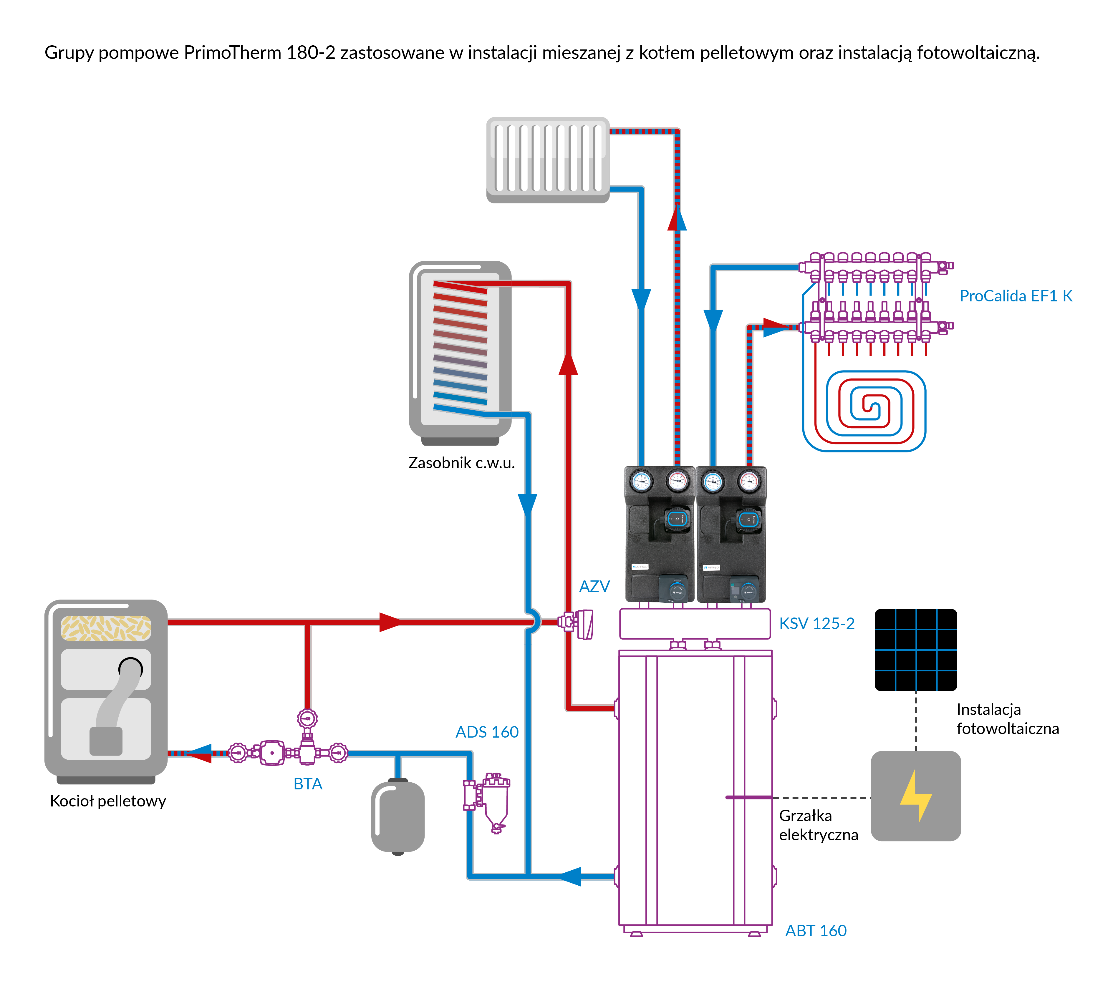 Stosowana w instalacjach grzewczych i chłodzących.Montowana na rozdzielaczu KSV, buforze ABT 50/ABT 160 lub jako niezależny element instalacji.
