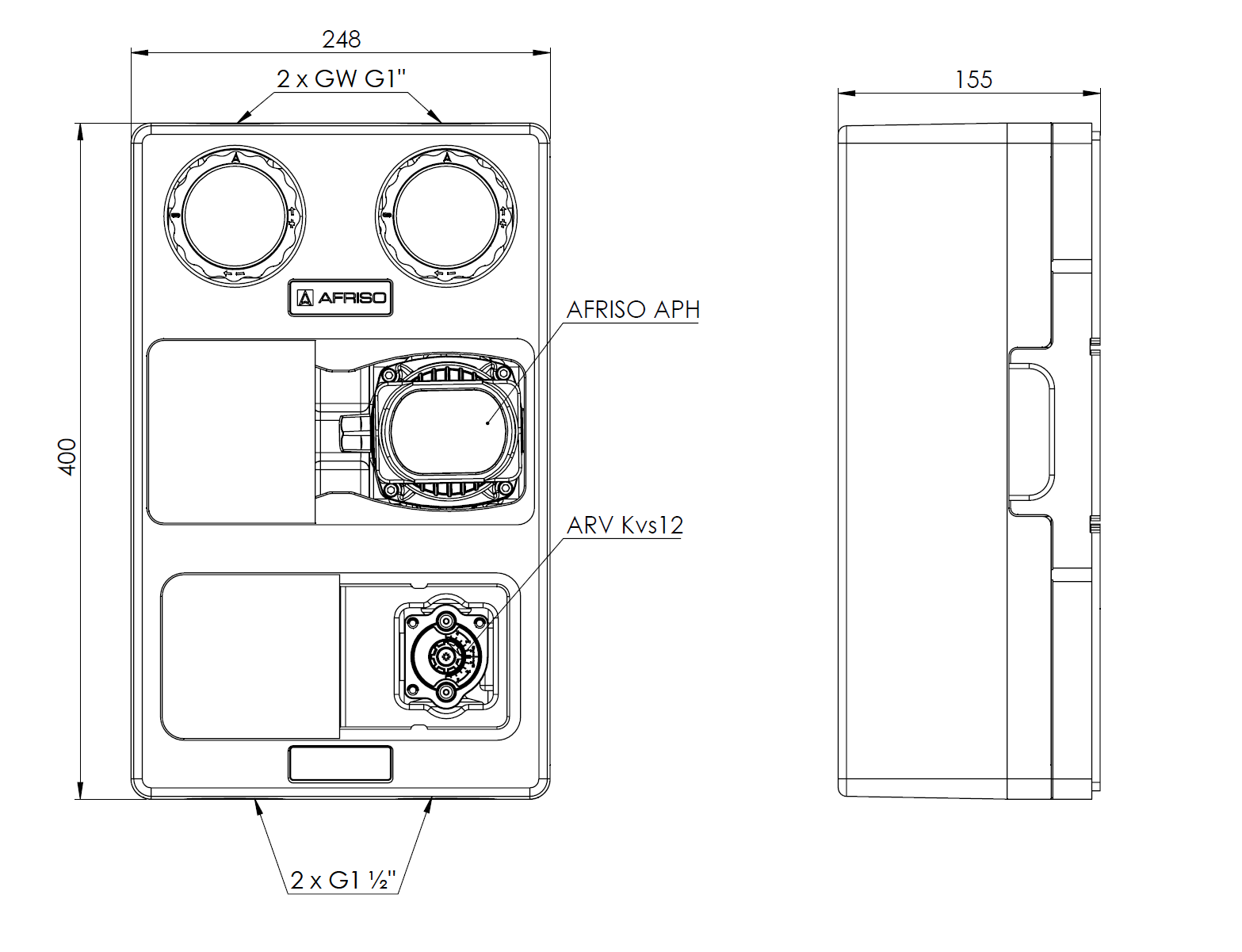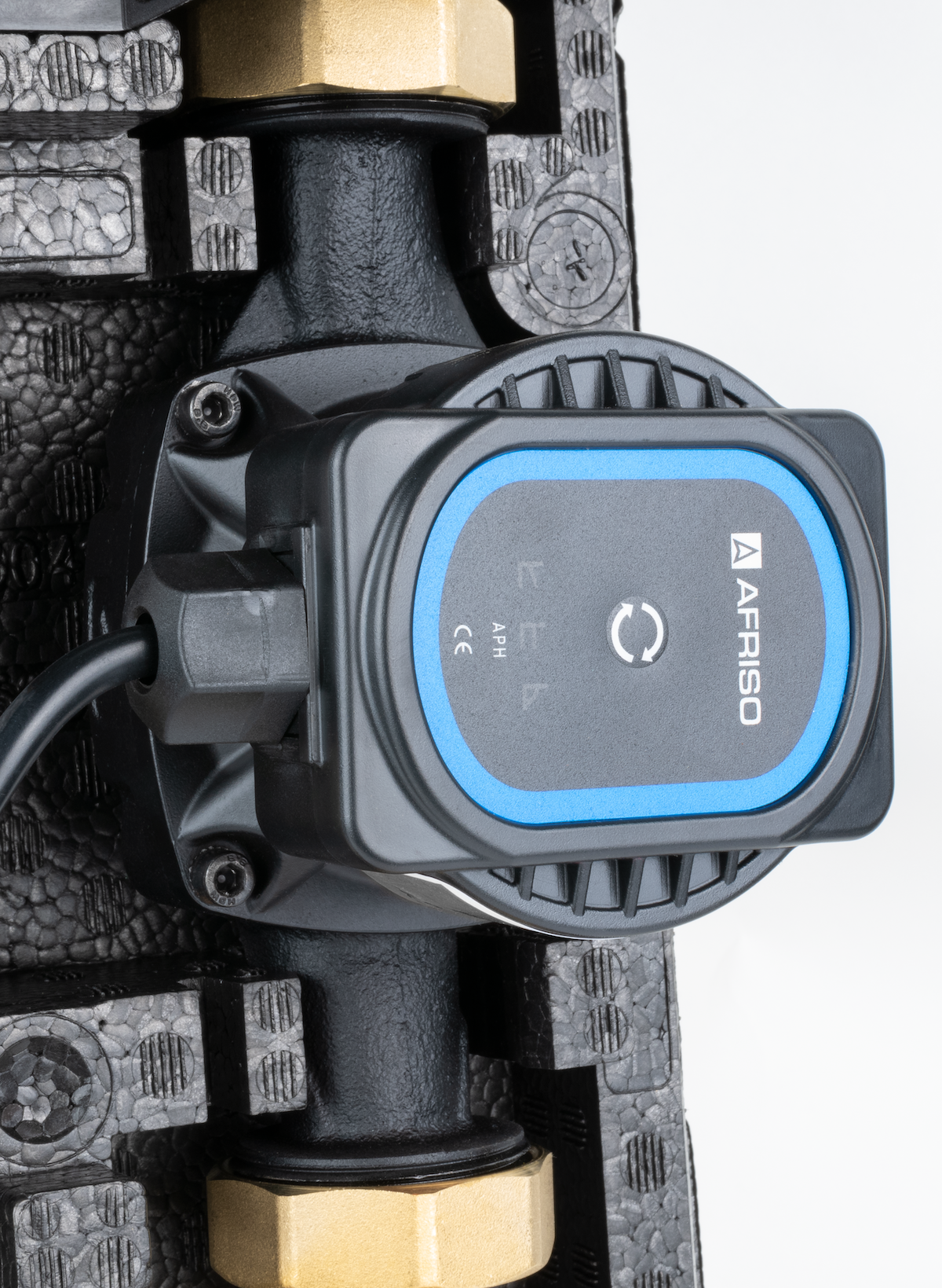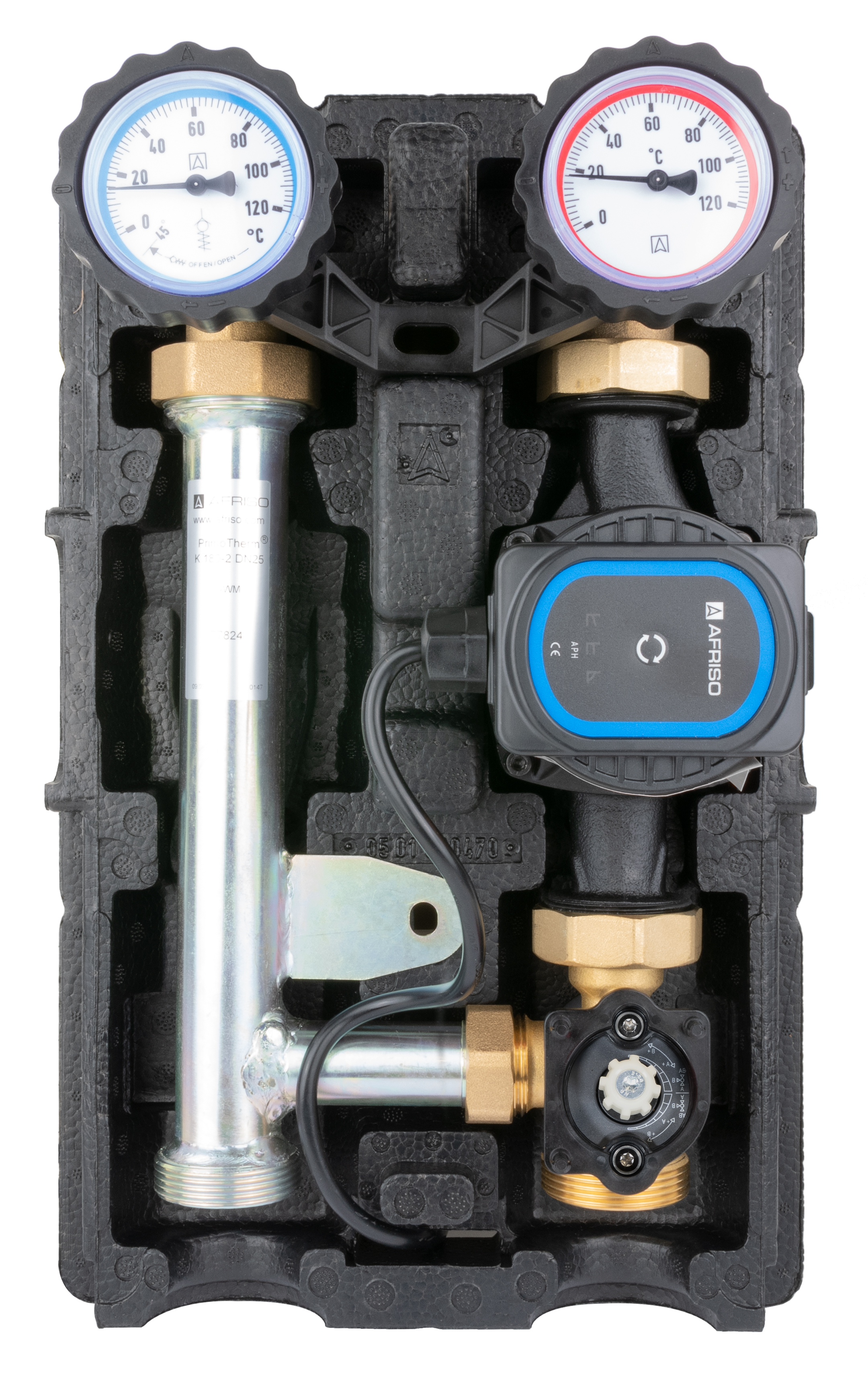 Grupa pompowa AFRISO PrimoTherm K 180-2 DN 25 AP 3-WM GZ x GW 1 1/2'' x 1'', z zaworem mieszającym, z izolacją, z pompą obiegową AFRISO APH 361 25-7/180 mm