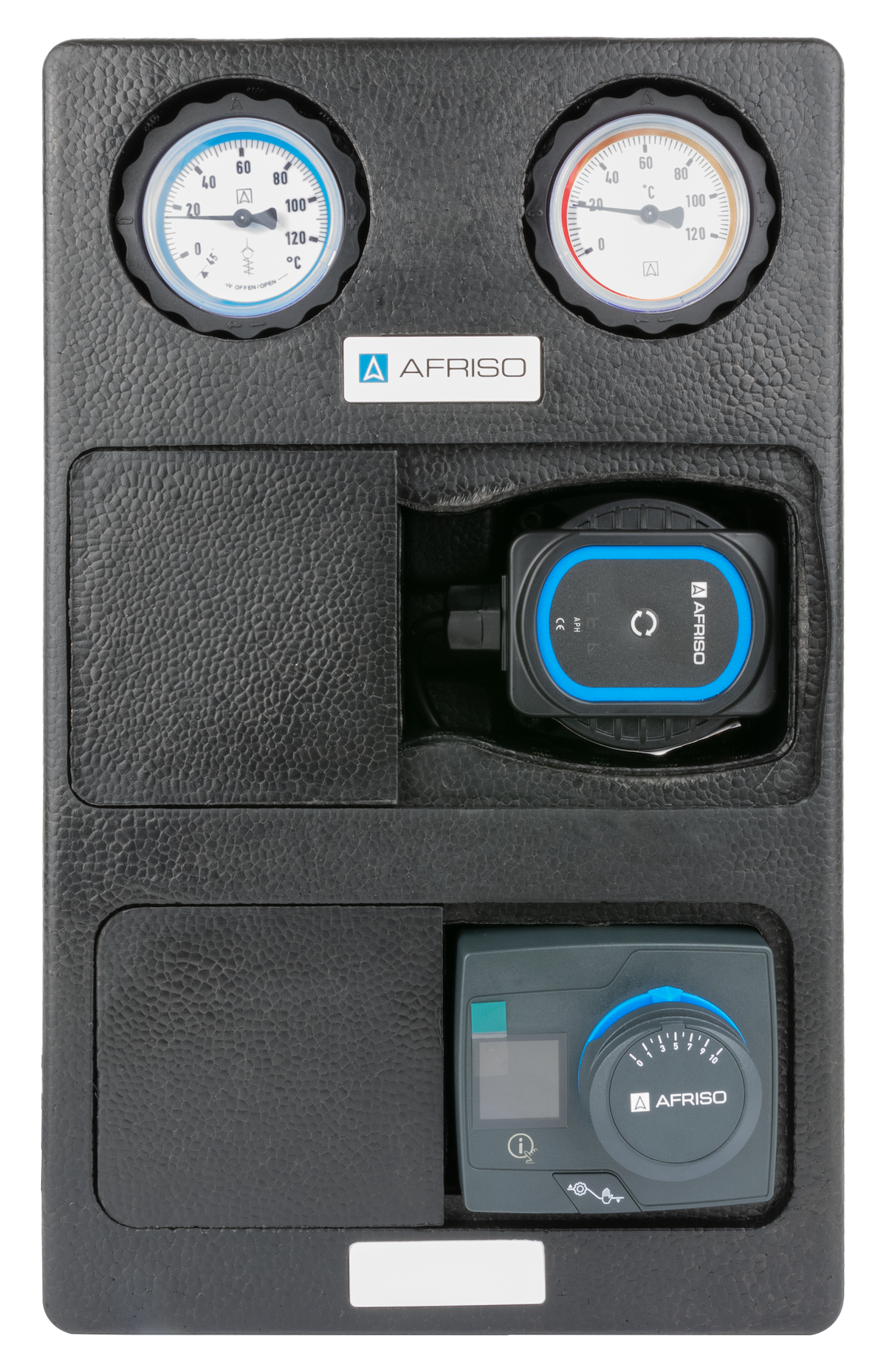 Grupa pompowa AFRISO PrimoTherm K 180-2 DN 25 AP 3-WM-R GZ x GW 1 1/2'' x 1'', z zaworem mieszającym, z izolacją, z pompą obiegową AFRISO APH 361 25-7/180 mm