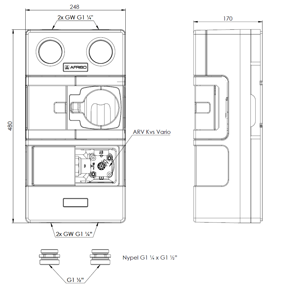 Zainstalowany zawór mieszający ARV Kvs Vario wartość współczynnika Kvs może być ustawiana na 12, 16 lub 22 m³/h