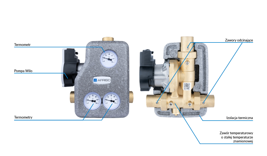 Grupa pompowa AFRISO RTA 45 GW 1'' x 1'', z zaworem termostatycznym, z izolacją