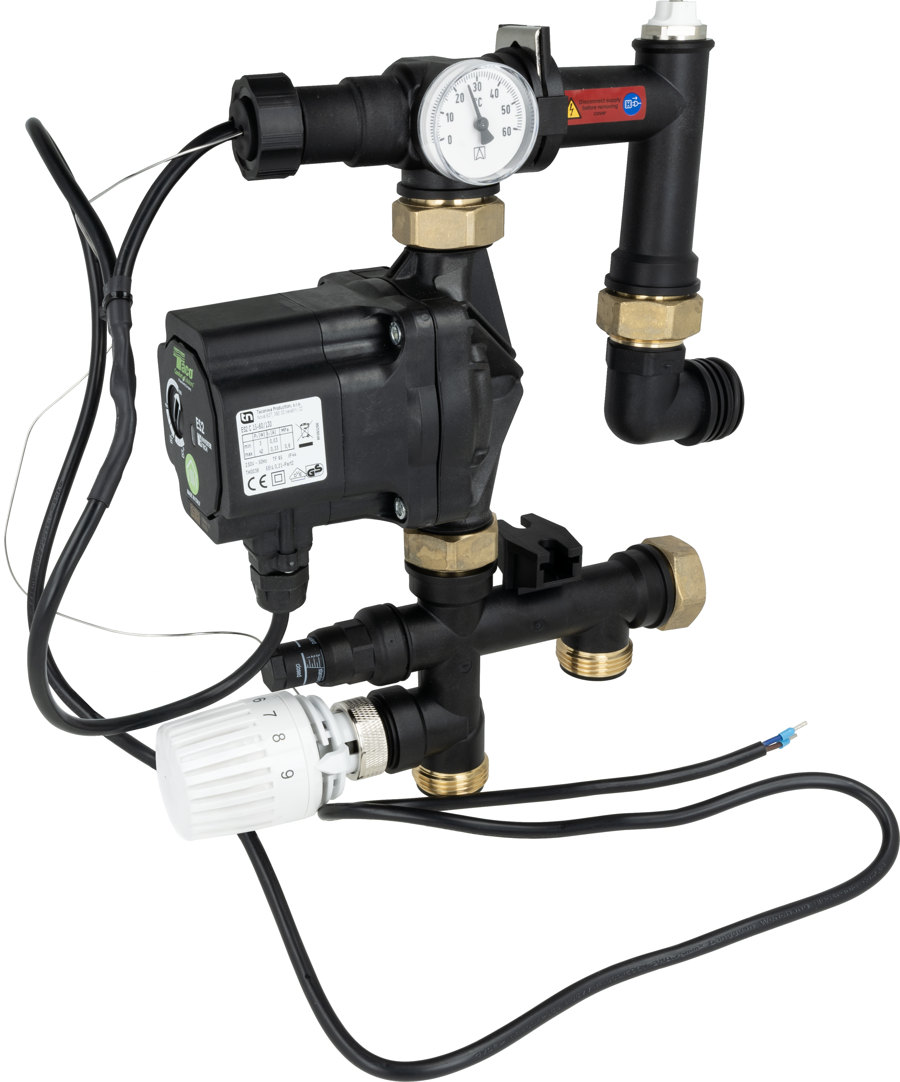 Termostat bezpieczeństwa pompy chroni instalację płaszczyznową przed uszkodzeniem na skutek zbyt wysokiej temperatury medium.