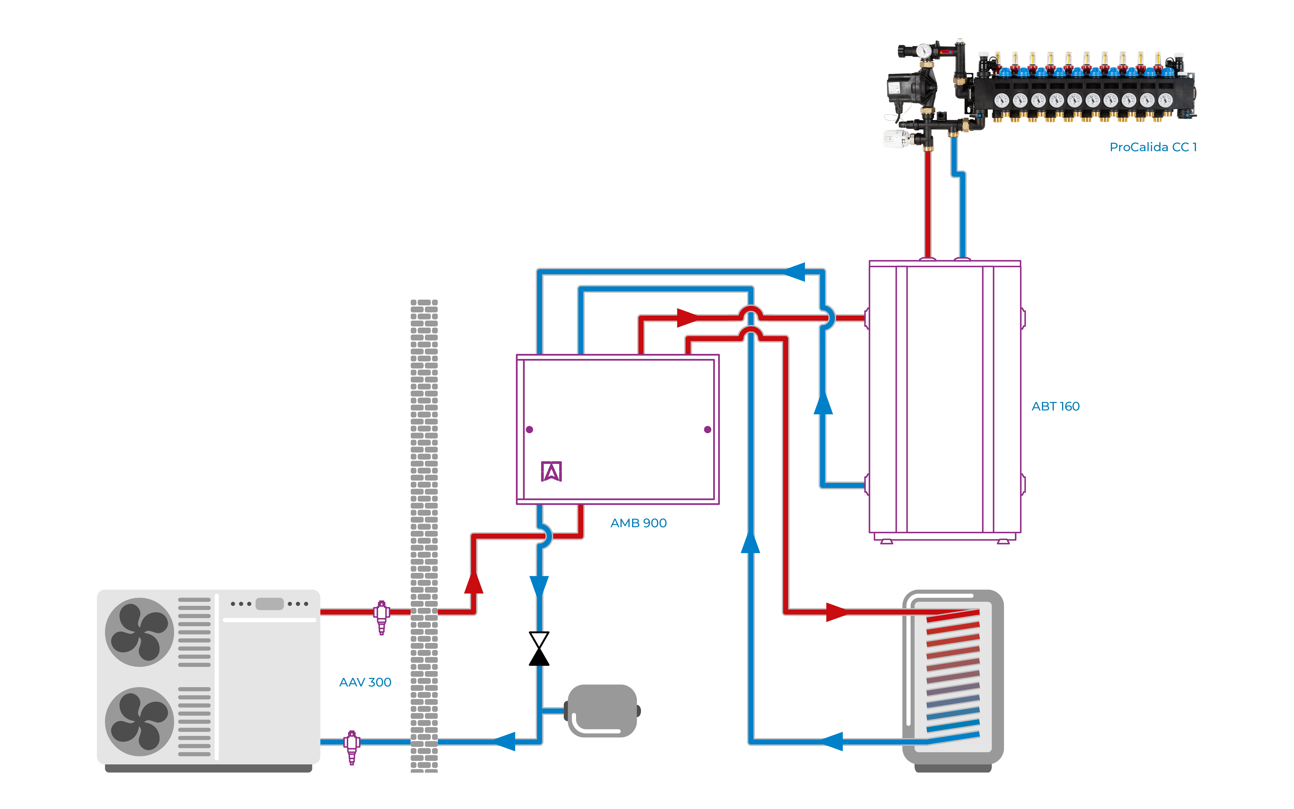 Stosowany w instalacjach grzewczych i chłodzących.Montowany między źródłem ciepła / chłodu a rozdzielaczem ProCalida CC 1.