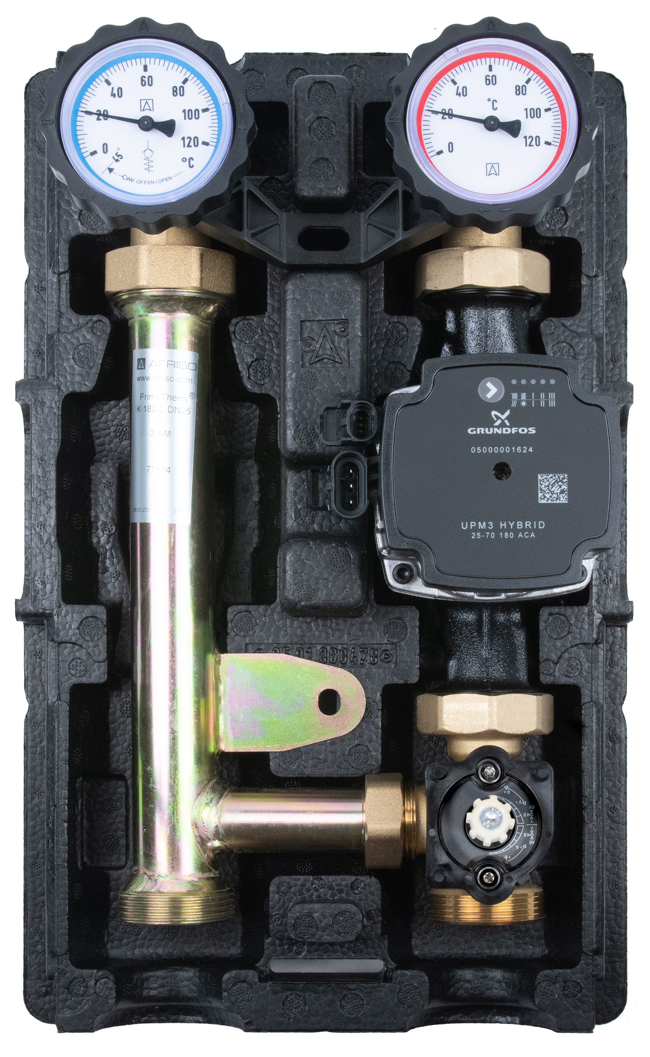 Grupa pompowa PrimoTherm K 180-2 DN25 GP 3-WM, pompa Grundfos UPM3 Hybrid, zawór mieszający ARV Kvs Vario