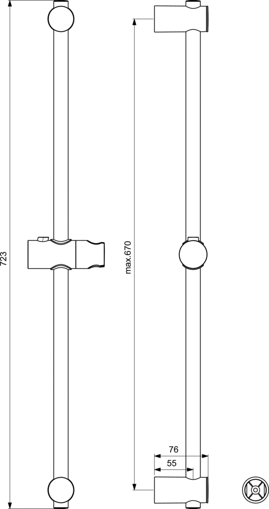 Drążek o średnicy 21 mm i długości 720 mm. Wykonane z tworzywa mocowanie przesuwne słuchawki. Metalowe mocowanie do ściany.