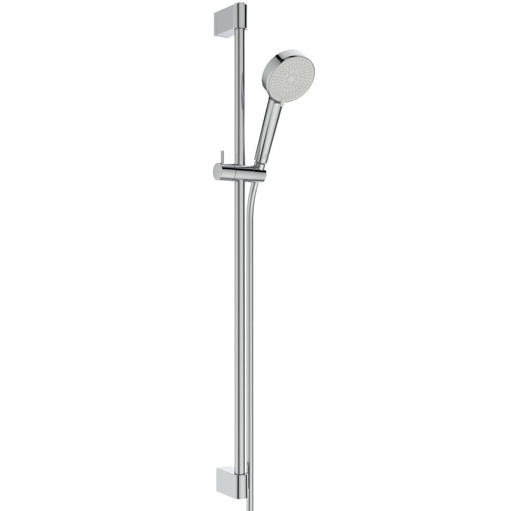 Zestaw prysznicowy Idealrain marki Ideal Standard łączy stylowe wzornictwo ze zrównoważoną funkcjonalnością. Seria Idealrain wyróżnia się znakomitym wzornictwem i innowacyjną technologią. Dzięki temu można poczuć w swojej łazience czystą przyjemność kąpieli pod prysznicem. Nowoczesny design gładko wpasowuje się w każdą aranżację łazienki. Dzięki funkcji EasyClean słuchawkę prysznicową łatwo się czyści – osady z kamienia na silikonowych dyszach można usunąć poprzez delikatne przetarcie. Do wyboru są dwie funkcje: relaksujący delikatny deszcz z ultradrobnymi kroplami wody lub orzeźwiający masaż strumieniem masującym. Zużycie wody jest zredukowane do efektywnych 8 l/min bez pogorszenia komfortu kąpieli pod prysznicem. Jest to korzystne zarówno dla środowiska, jak i dla portfela. Wąż prysznicowy Idealflex jest odporny na skręcanie i ma gładką powierzchnię, która jest łatwa do czyszczenia. Dzięki elastycznemu montażowi ten zestaw prysznicowy można bezproblemowo zintegrować z aranżacją łazienki i co za tym idzie ze znajdującą się na wyposażeniu baterią.