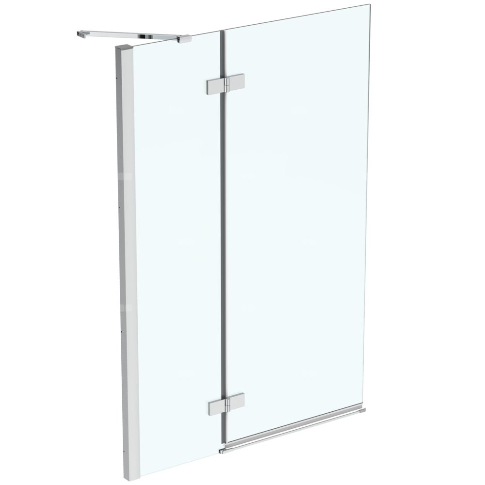 Parawan nawannowy Ideal Standard i.life z zawiasami (2-elementowy), wysokość 1500 mm. Wykonany z transparentnego szkła 8 mm z powłoką ułatwiającą czyszczenie. Grubość profili: 1,2 mm, regulacja ułatwiająca dopasowanie do 25 mm, z ukrytymi śrubami (maskowanie na każdej stronie profilu ściennego). Zawias jest zamocowany pomiędzy dwoma panelami. Parawan otwiera się tylko na zewnątrz. Profil ścienny z panelem podporowym, profil ruchomy uszczelniony od spodu. Profil ścienny: 400 mm i profil ruchomy: 600 mm. WAŻNE: dostępne są wersje parawanu lewa i prawa, produkty nie są odwracalne.