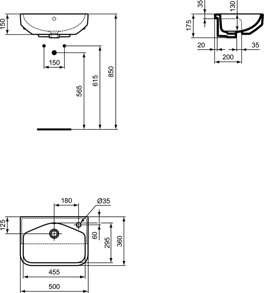 Umywalka Ideal Standard i.life S podblatowa kompaktowa (krótki wysięg) - tylko 36 cm. Z wybitym otworem na baterię po prawej stronie oraz przelewem. Zestaw montażowy oraz szablon do wycinania w komplecie.