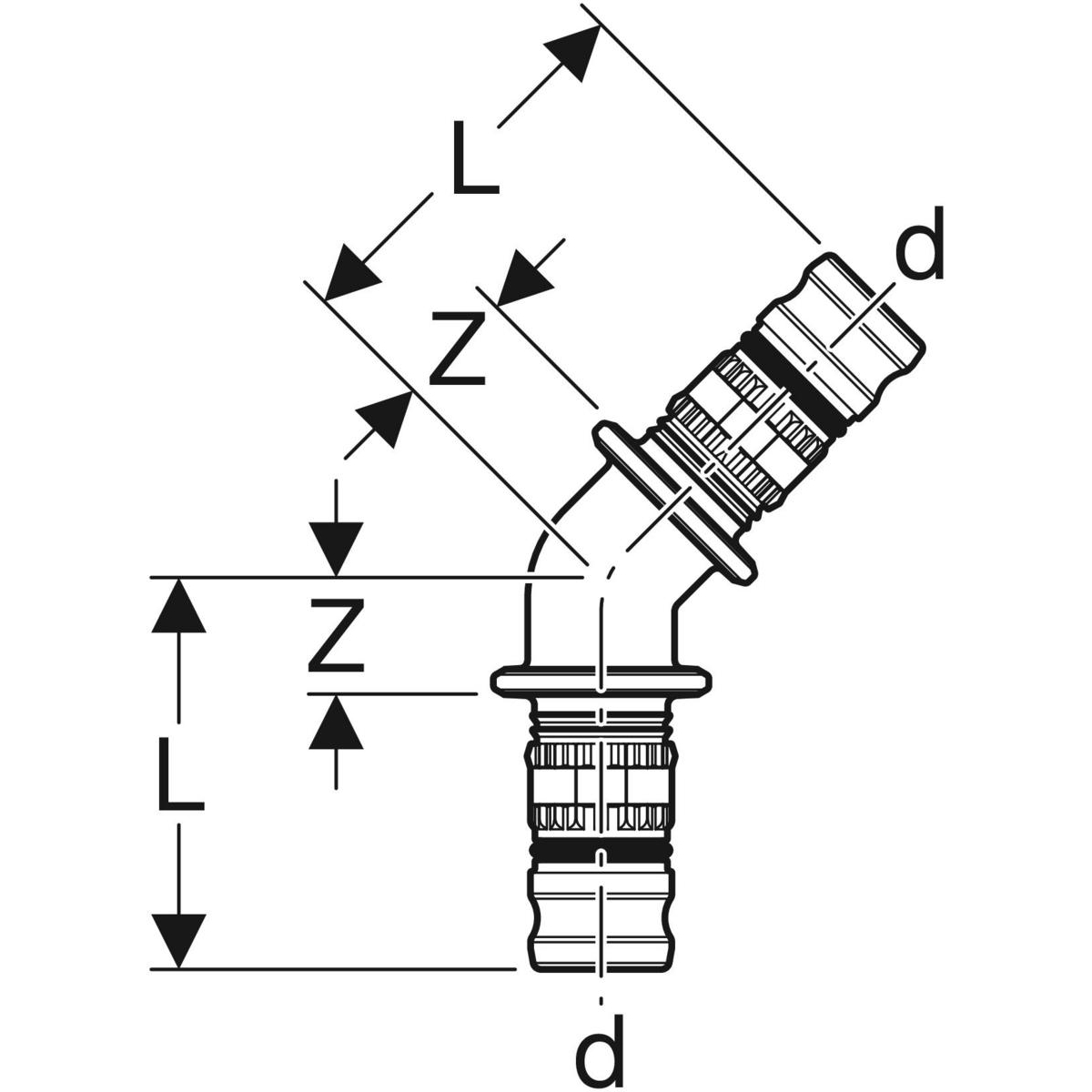 Kolano 45' GEBERIT Mepla, PVDF / PVDF, 32 mm, DN 25 x 32 mm x DN 25 (końcówka wciskowa x końcówka wciskowa), (głębokość: 18 mm) z uszczelką