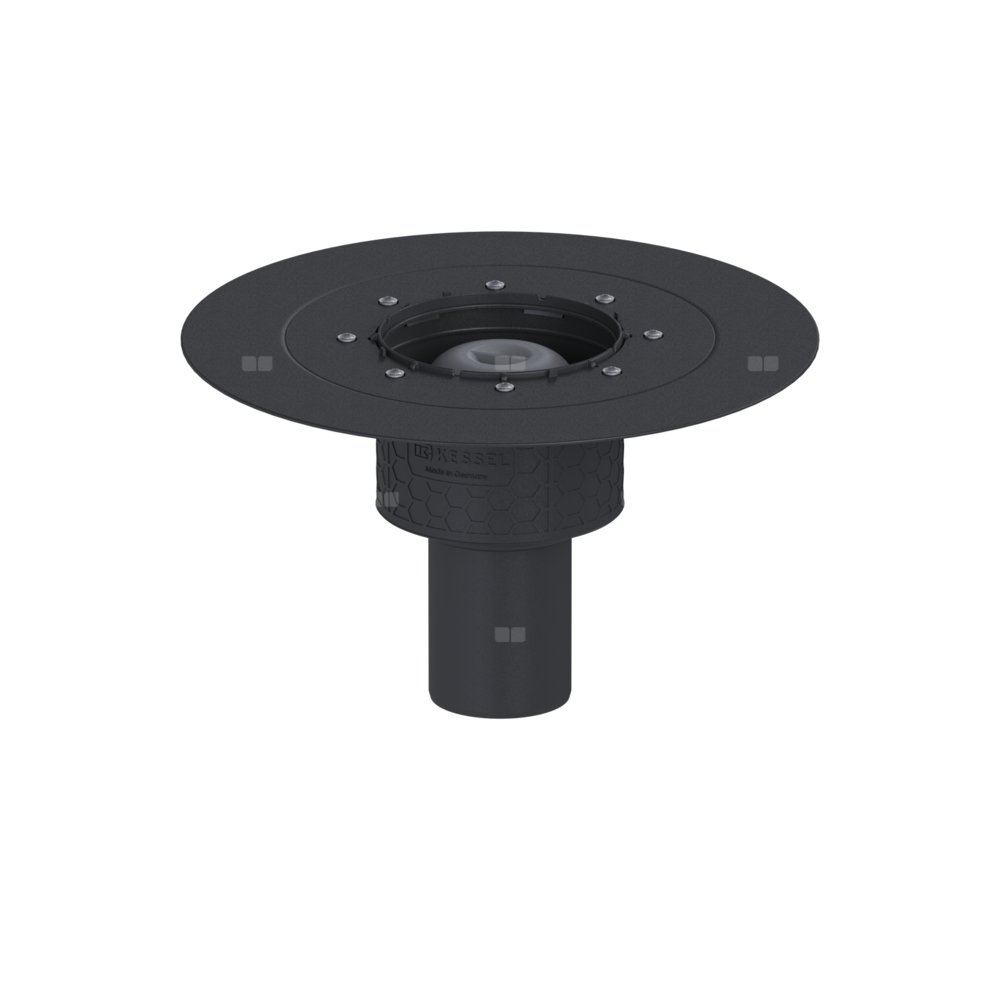 KESSEL Korpus Ecoguss, wielkość nominalna (DN) 70, króciec pionowy, odwodnienie przez odpływ punktowy, syfonem w zestawie, zszczelnienie korpusie przez Kołnierz do uszczelnień klejonych (odpowiedni do barier przeciwwilgociowych)