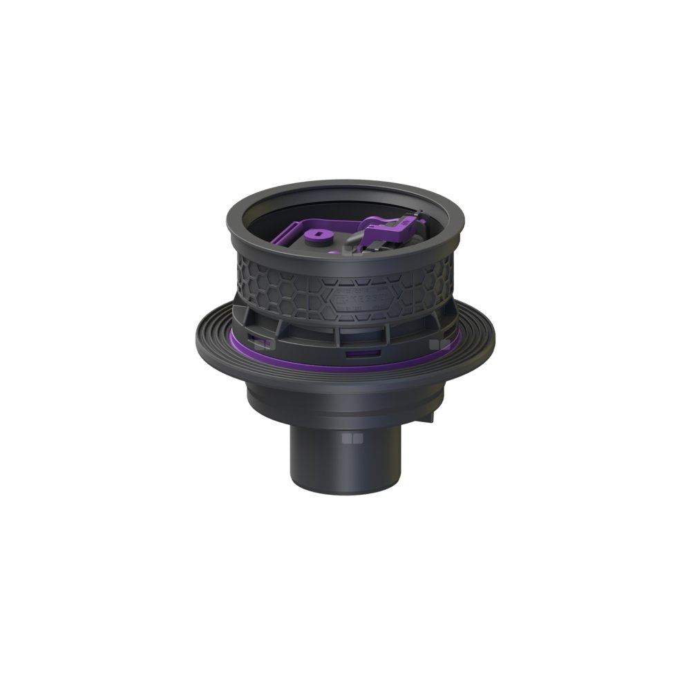 Korpus „Universale Plus” wykonany z tworzywa sztucznego korpus służy w połączeniu z nasadą do odwadniania ścieków bez fekaliów. Korpus jest wyposażony w wyjmowany zawór przeciwzalewowy z dwoma klapami zwrotnymi, ryglowane ręcznie zamknięcie awaryjne oraz osadnik. Z pokrywą ochronną na czas fazy budowlanej.