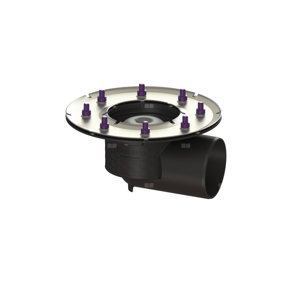 KESSEL Korpus Ecoguss, wielkość nominalna (DN) 100, króciec boczny, odwodnienie przez odpływ punktowy, syfonem w zestawie, zszczelnienie korpusie przez Dociskowy kołnierz uszczelniający (odpowiedni do tworzenia uszczelnień wodoszczelnych)