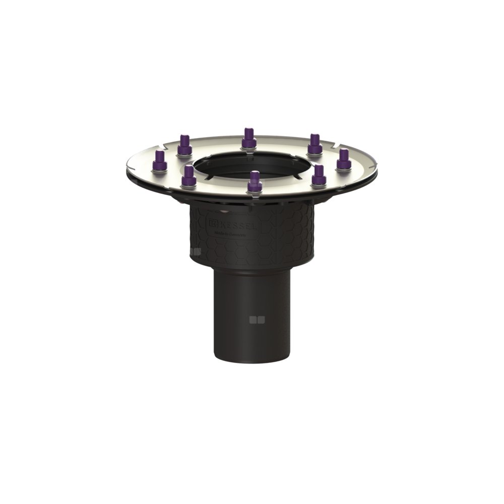 KESSEL Korpus Ecoguss, wielkość nominalna (DN) 80, króciec pionowy, odwodnienie przez odpływ punktowy, syfonem, zszczelnienie korpusie przez Dociskowy kołnierz uszczelniający (odpowiedni do tworzenia uszczelnień wodoszczelnych)