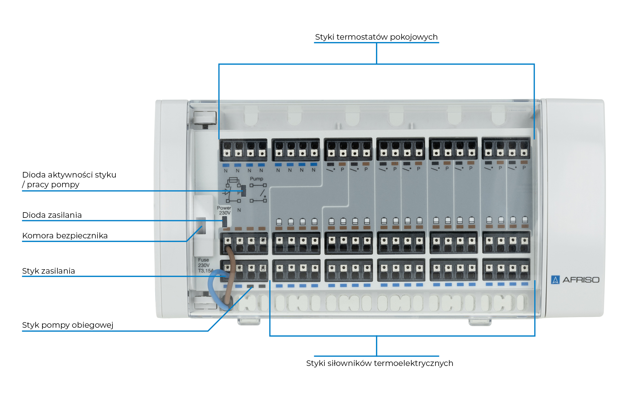 Stosowana w rozdzielaczowych instalacjach grzewczych.Montowana na szynie DIN w pobliżu rozdzielacza.