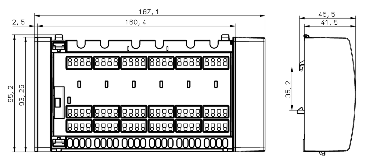 Obsługuje do 20 siłowników termoelektrycznych (2 strefy po 4 siłowniki, 6 stref po 2 siłowniki).