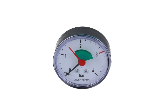 Manometr z rurką Bourdona AFRISO HZ grzewczy 0/4 bar G1/4B ekscentryczne fi 50 mm, kl. 2.5%