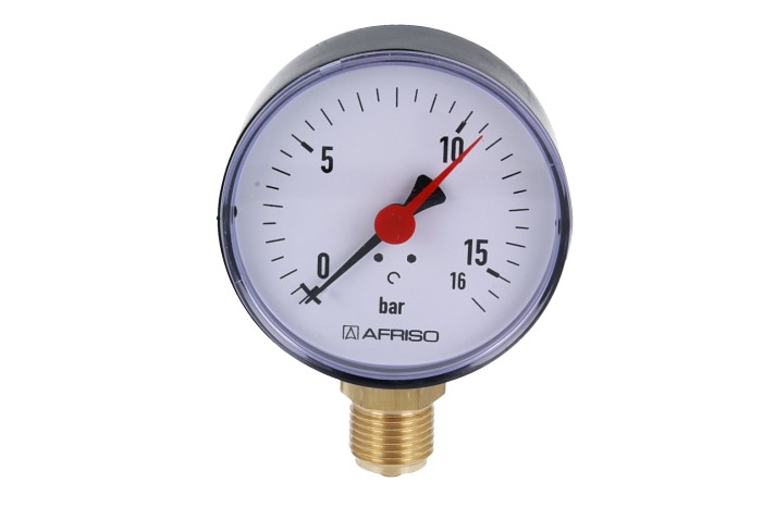 Manometr z rurką Bourdona AFRISO RF grzewczy 0/16 bar G1/2B radialne fi 80 mm, kl. 2.5%