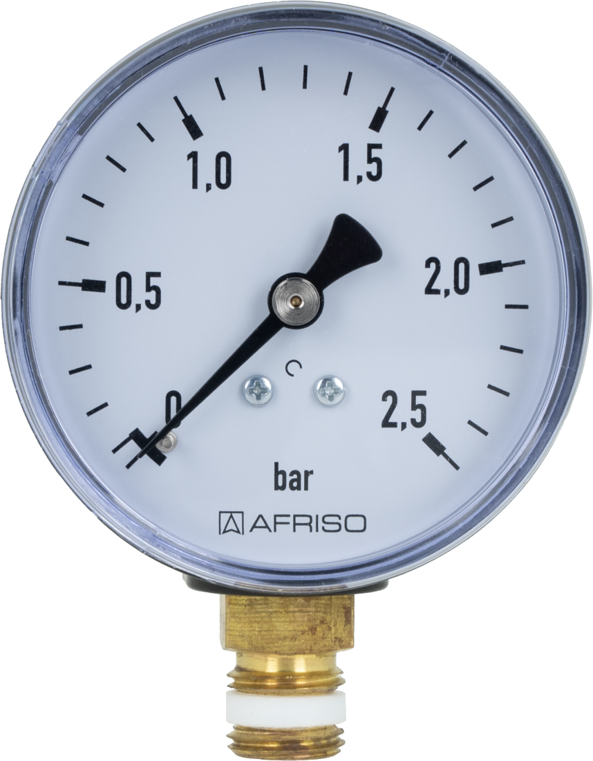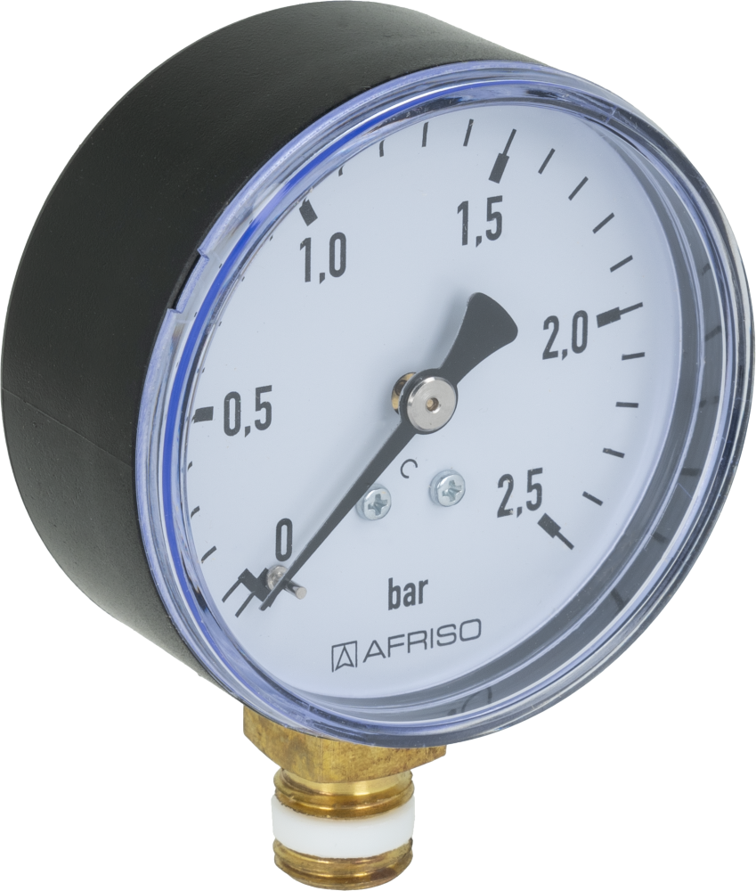 Manometr z rurką Bourdona AFRISO RF grzewczy 0/2,5 bar G1/4B radialne fi 63 mm, kl. 2.5%