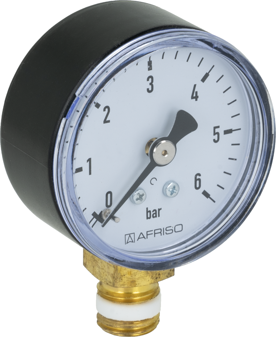 Manometr z rurką Bourdona AFRISO RF grzewczy 0/6 bar G1/4B radialne fi 50 mm, kl. 2.5%