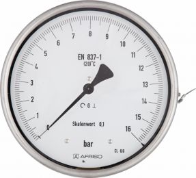 Manometr z rurką Bourdona AFRISO RF precyzyjny F -1/0 bar G1/2B aksjalne fi 160 mm, kl. 0.6%