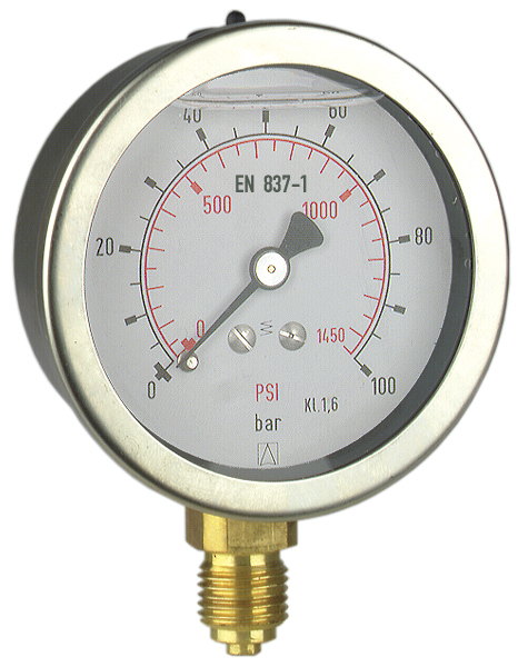 Manometr z rurką Bourdona AFRISO RF wstrząsoodporny -1/3 bar G1/2B aksjalne fi 100 mm, kl. 1.6%
