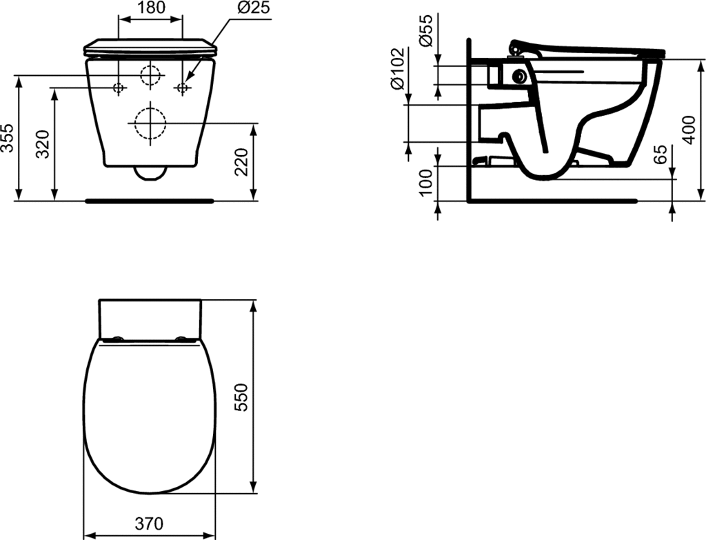 Miska wisząca 360x550x335 mm, umywalka w białym błyszczącym wykończeniu, CL1 pełne spłukiwanie 4.5 - 6 L, odpływ poziomy, CL2, bez oprawek - CONNECT