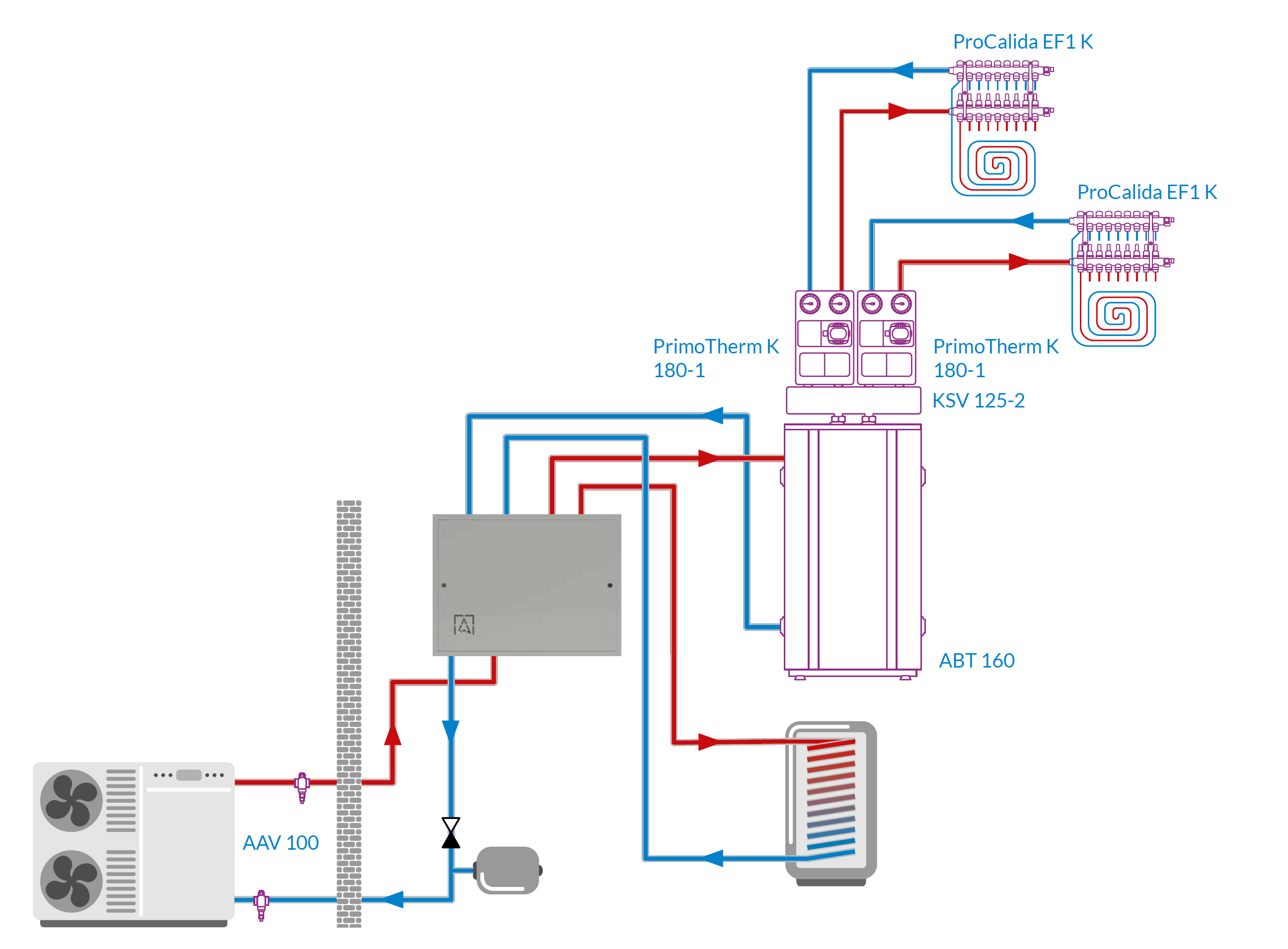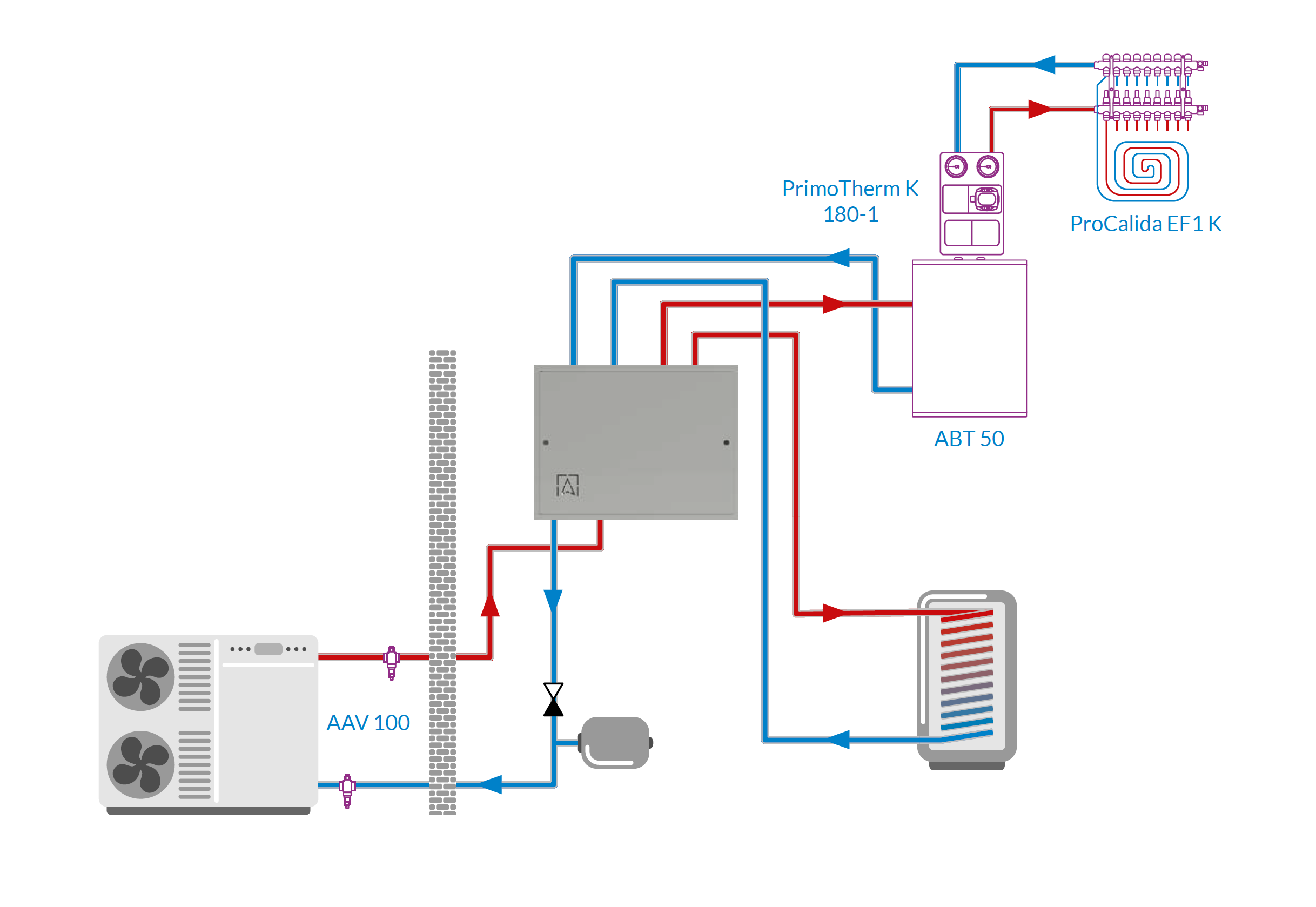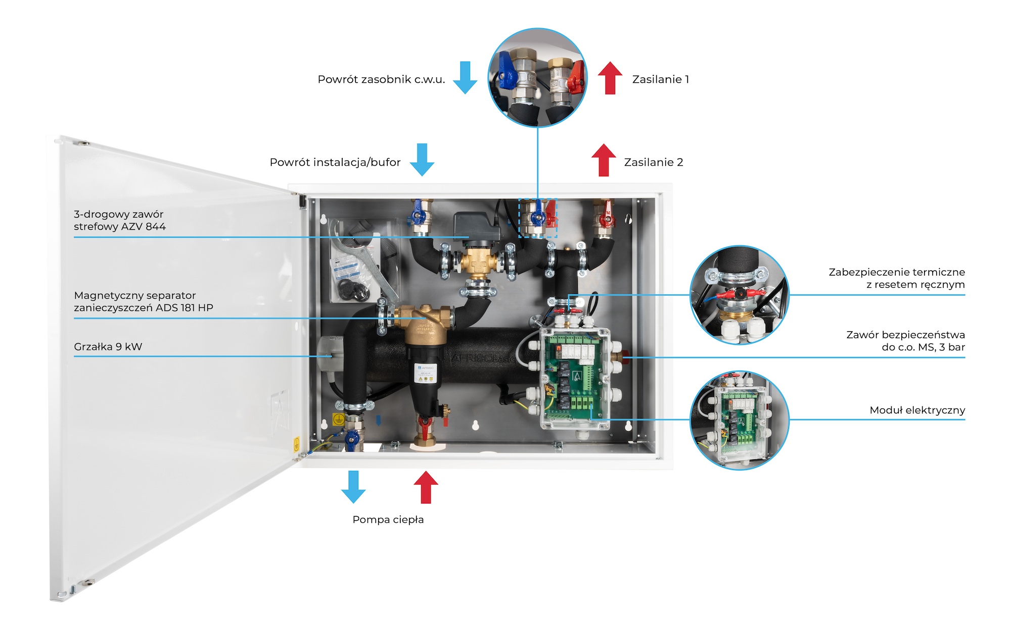 Stosowany w instalacjach grzewczych z pompą ciepła typu monoblok.Montowany na ścianie we wnętrzu budynku pomiędzy pompą ciepła, a zasobnikiem c.w.u. i buforem/instalacją.