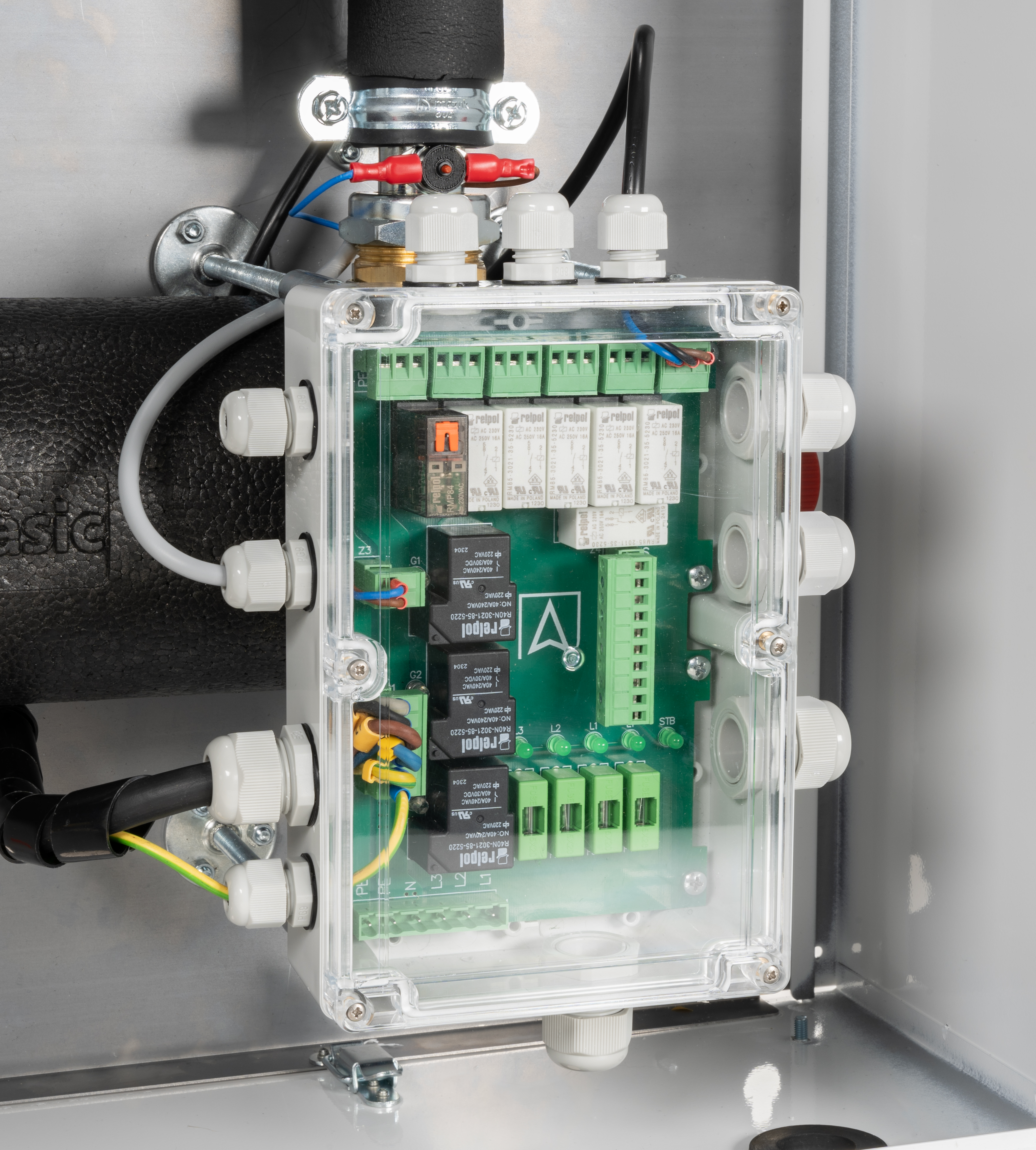 Moduł hydrauliczny do pomp ciepła AMB 900, z grzałką zanurzeniową 9 kW, zaworem przełączającym AZV, separatorem zanieczyszczeń ADS 181, przyłącza G11/4''