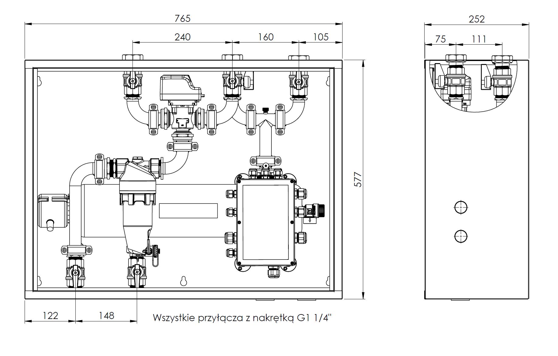 Zawory odcinające na każdym przyłączu przyspieszają prace montażowe oraz konserwacyjne.