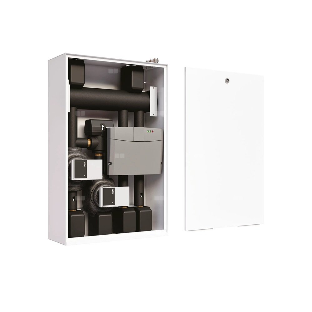 Moduł hydrauliczny obsługujący jedną strefę bezpośrednią i jedną mieszaną. Przeznaczony do pracy zarówno w trybie ogrzewania jak i chłodzenia.