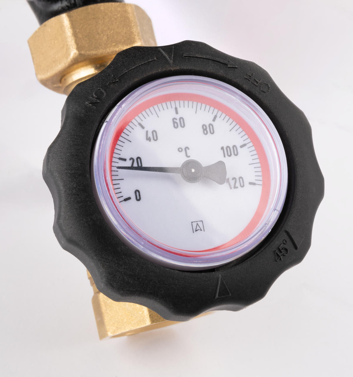 Termometr wbudowany pokrętło zaworu odcinającego kontroluje temperaturę medium.