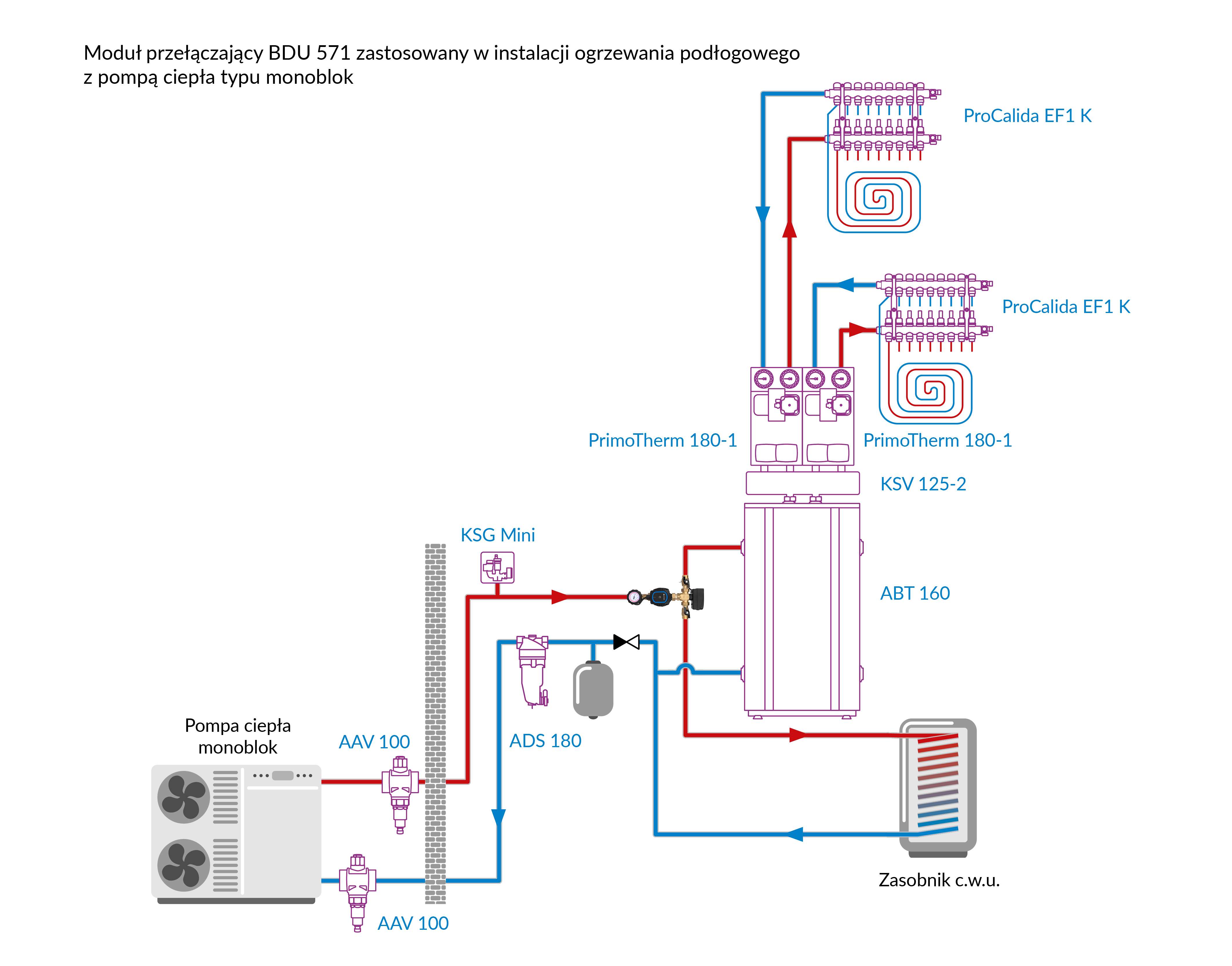 Moduł przełączający BDU 571 AP do pomp ciepła z zaworem AZV 643, pompa APH 160, armatura AFC