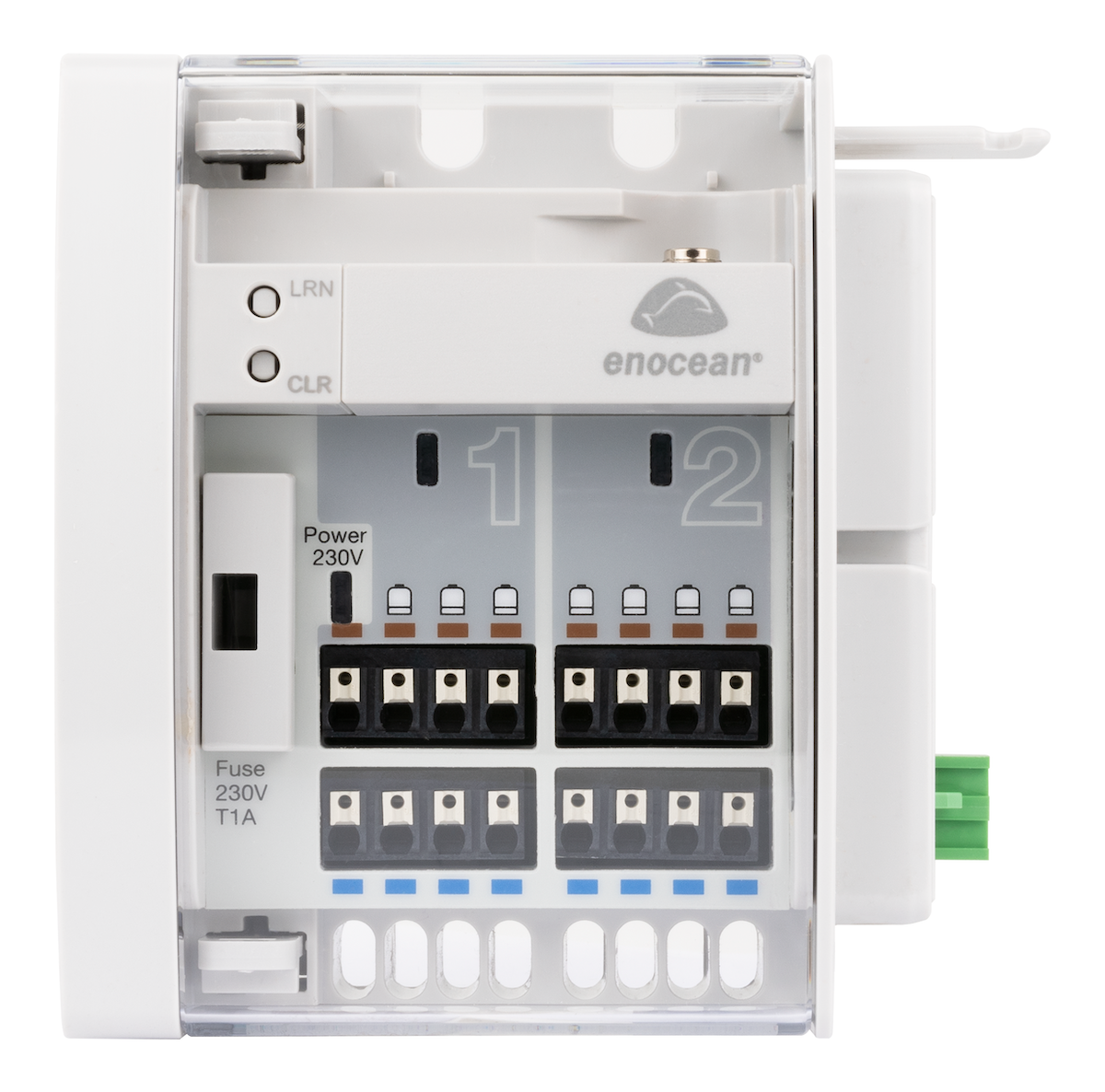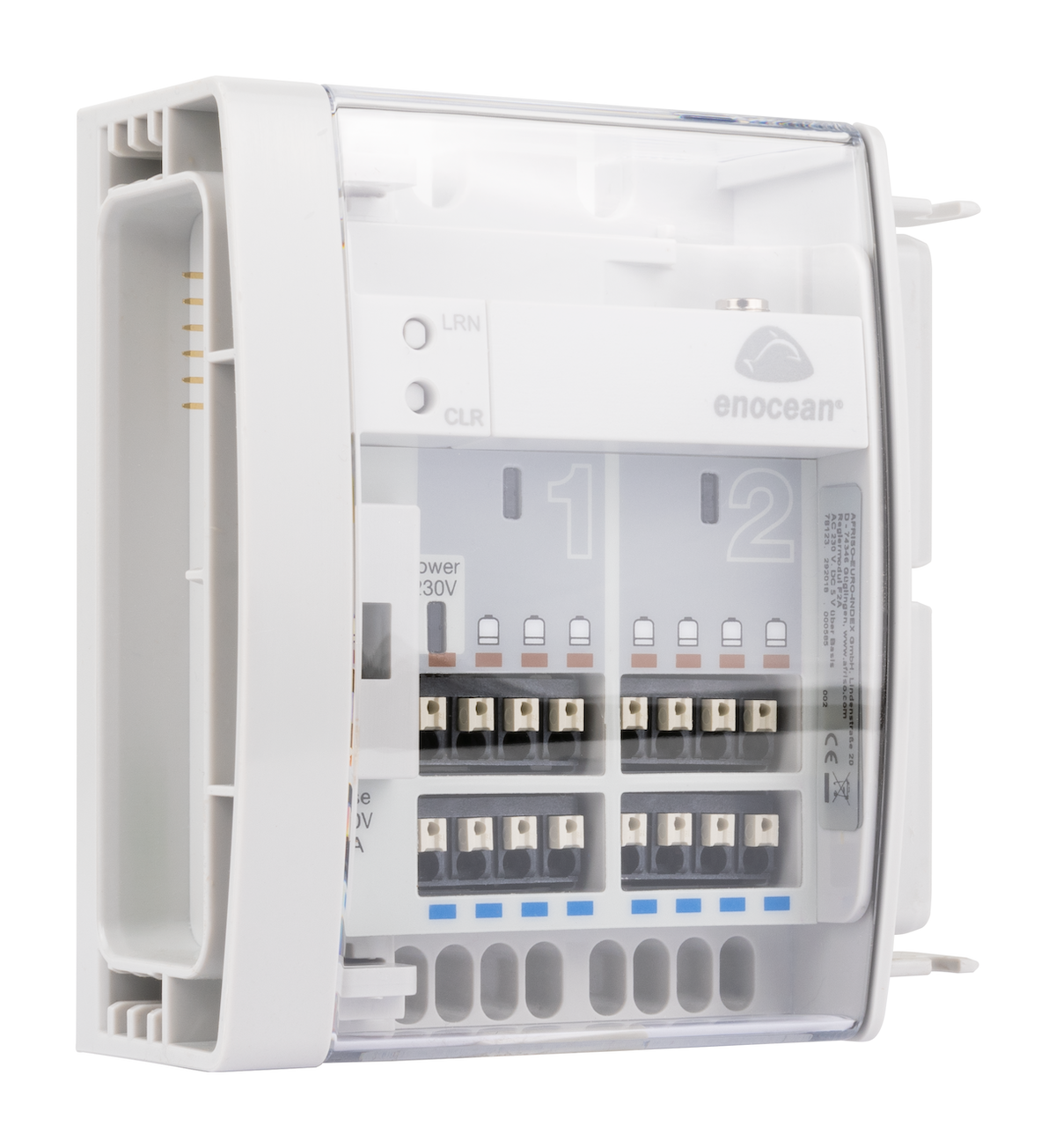 Antena zewnętrzna wyprowadza odbiornik sygnału EnOcean poza szafkę rozdzielacza, poprawiając zasięg.