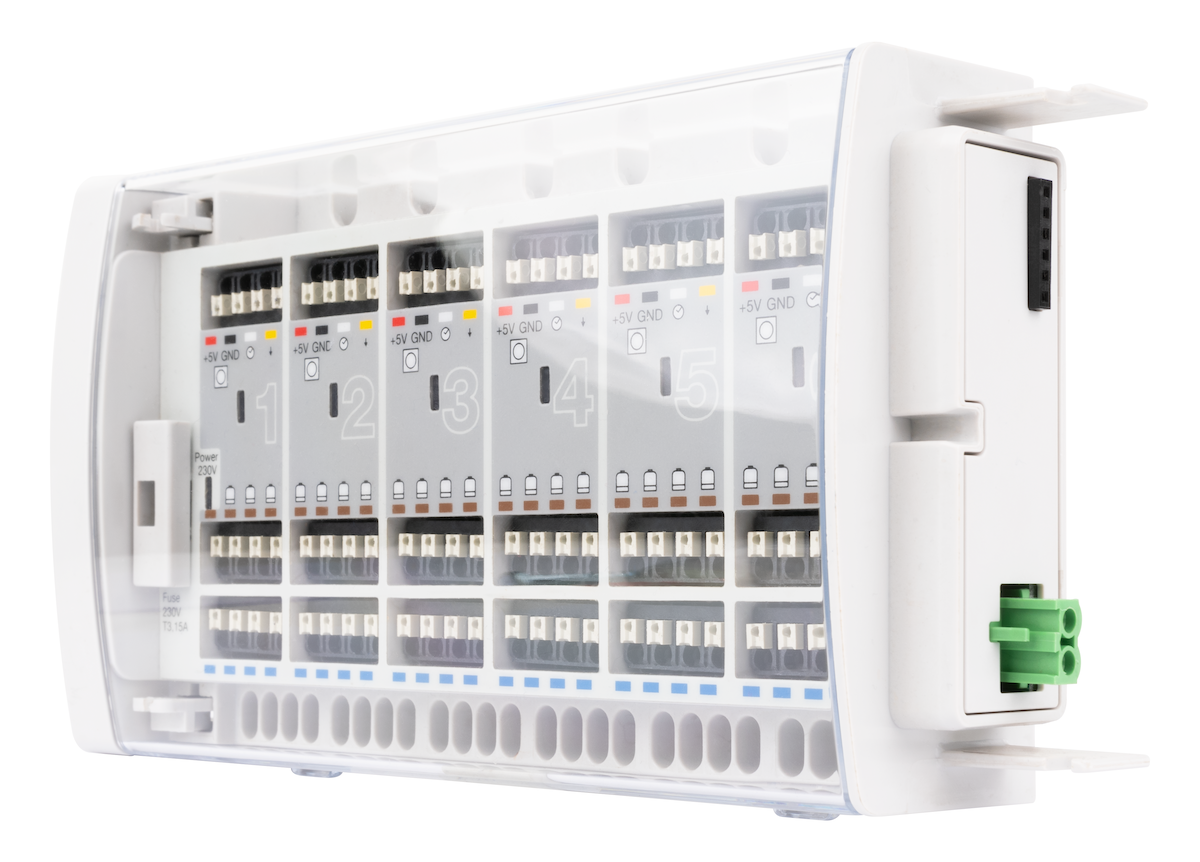 Stosowany w instalacjach grzewczych i chłodzących.Montowany na szynie DIN do modułu podstawowego BM w pobliżu rozdzielacza.