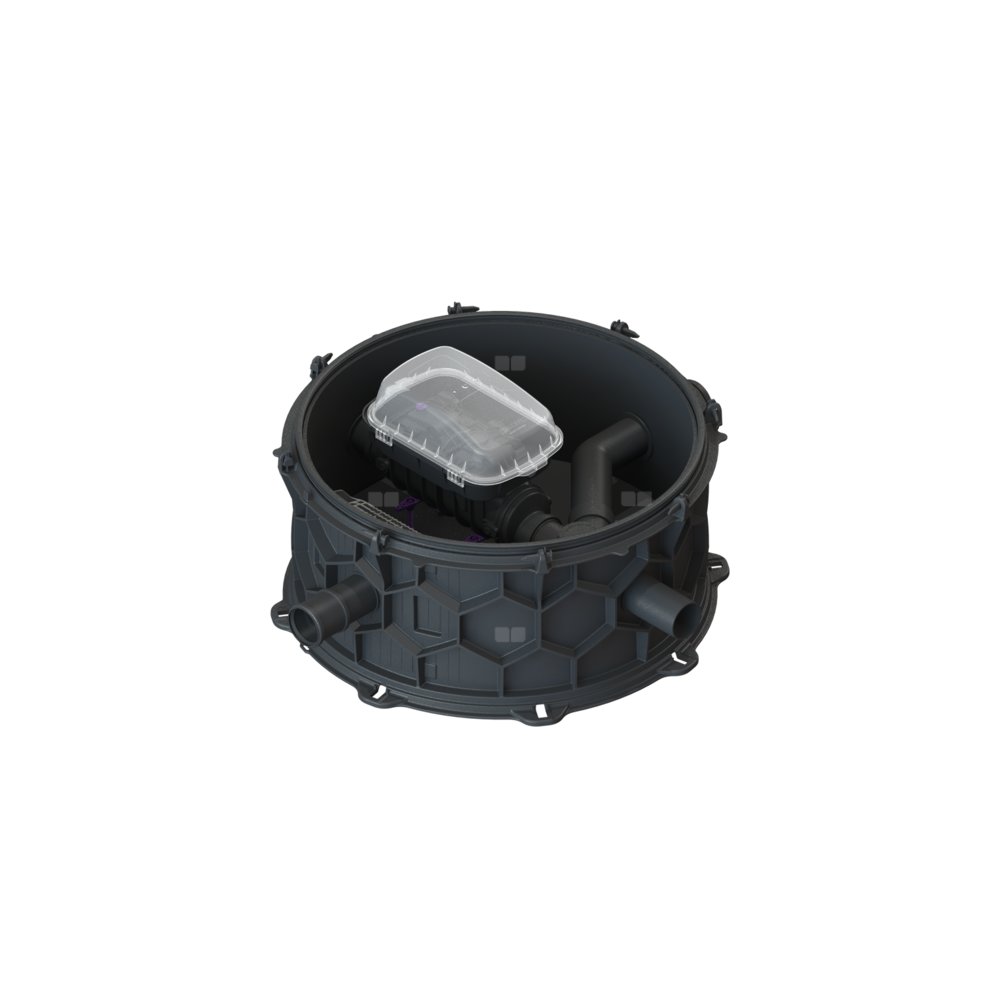 Moduł techniczny studzienki przeciwzalewowej z urządzeniem Controlfix z dwoma dopływami 90'w kierunku przepływu DN100