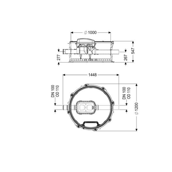 Moduł techniczny studzienki przeciwzalewowej z urządzeniem Controlfix z zamkniętą kinetą przelotową DN100