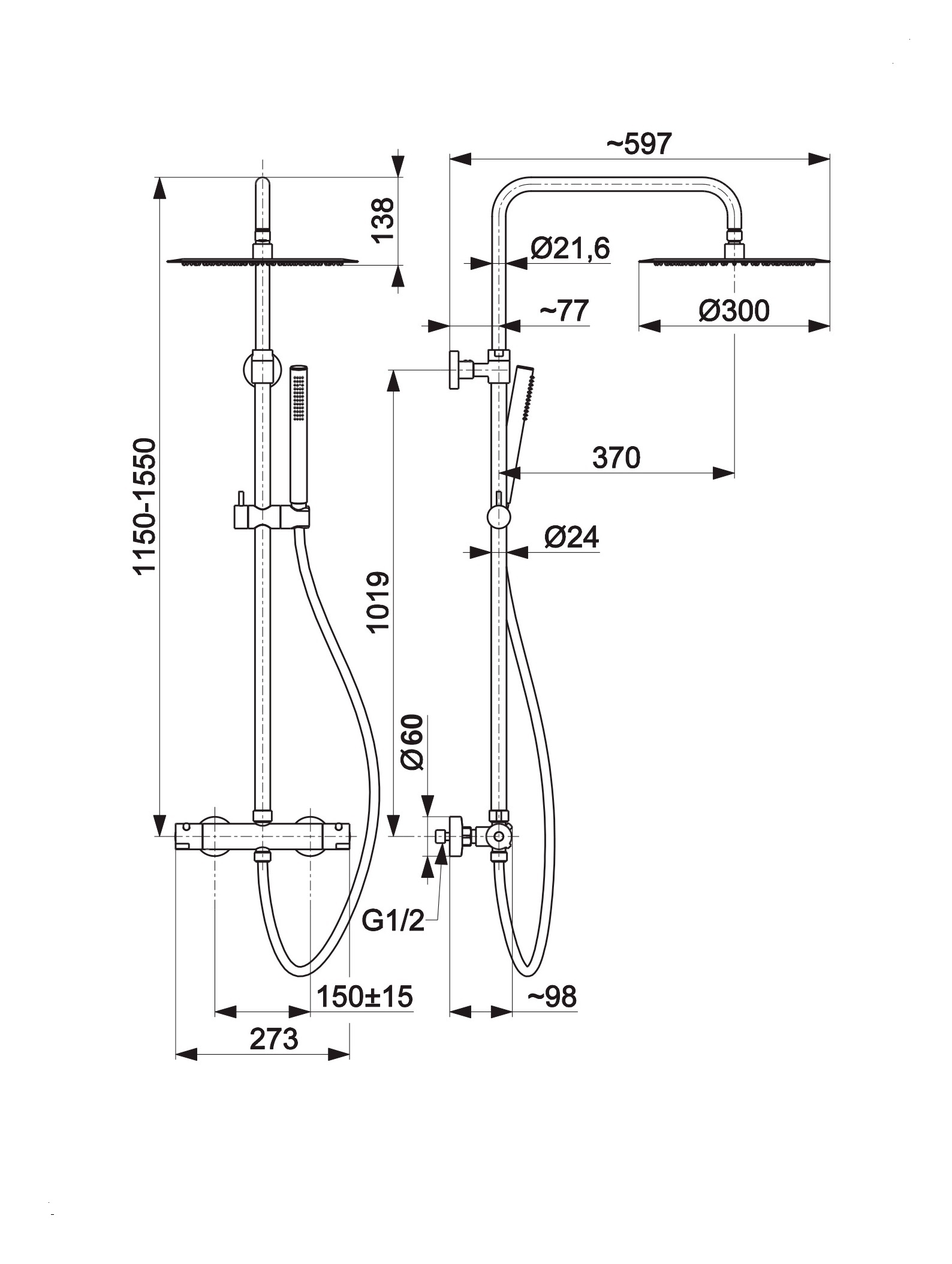 • Rozstaw przyłączy [mm]: 150 ± 15