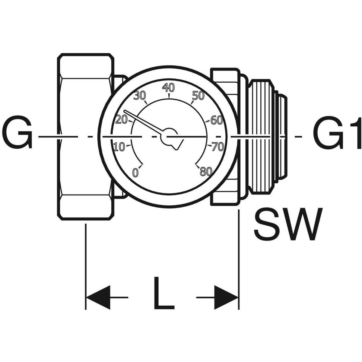 Nypel gwintowany Geberit z nakrętką i termometrem: G1 1/4 niklowany