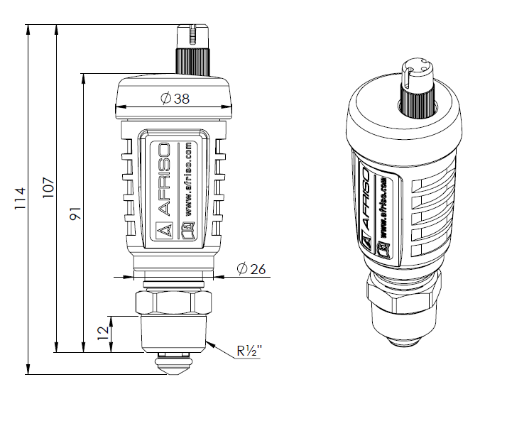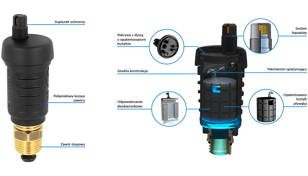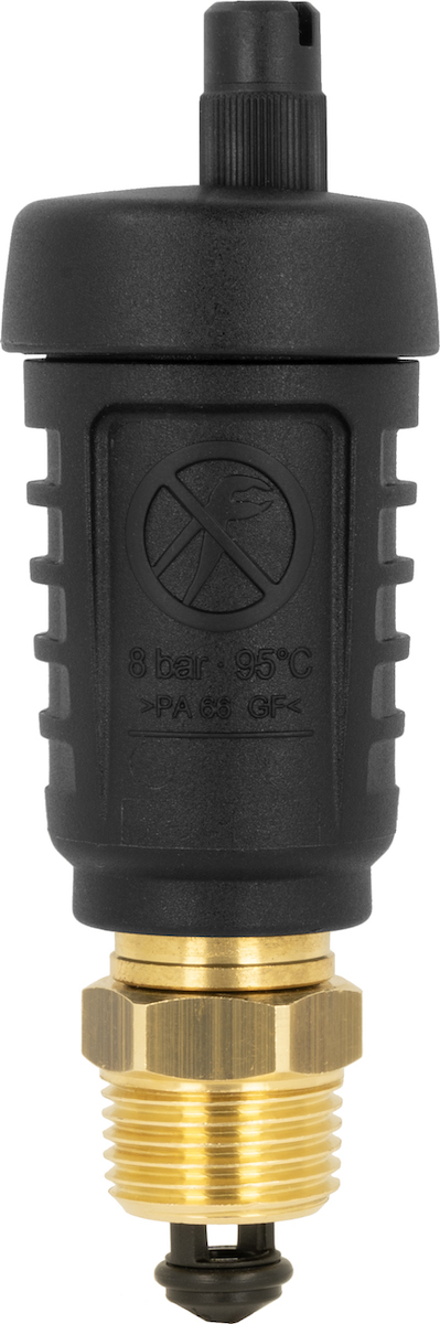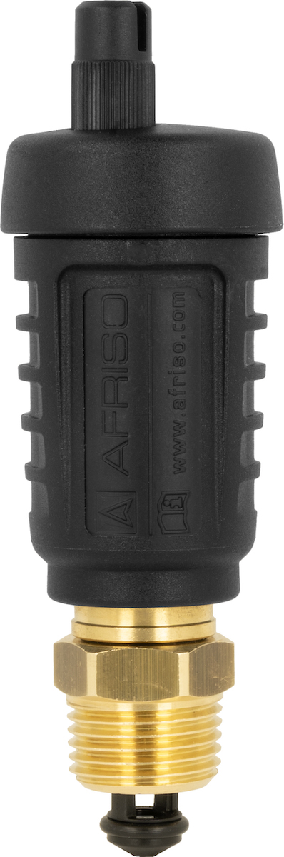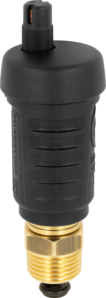 - Zawór stopowy umożliwia łatwą wymianę i konserwację odpowietrznika bez konieczności spuszczania medium z instalacji.