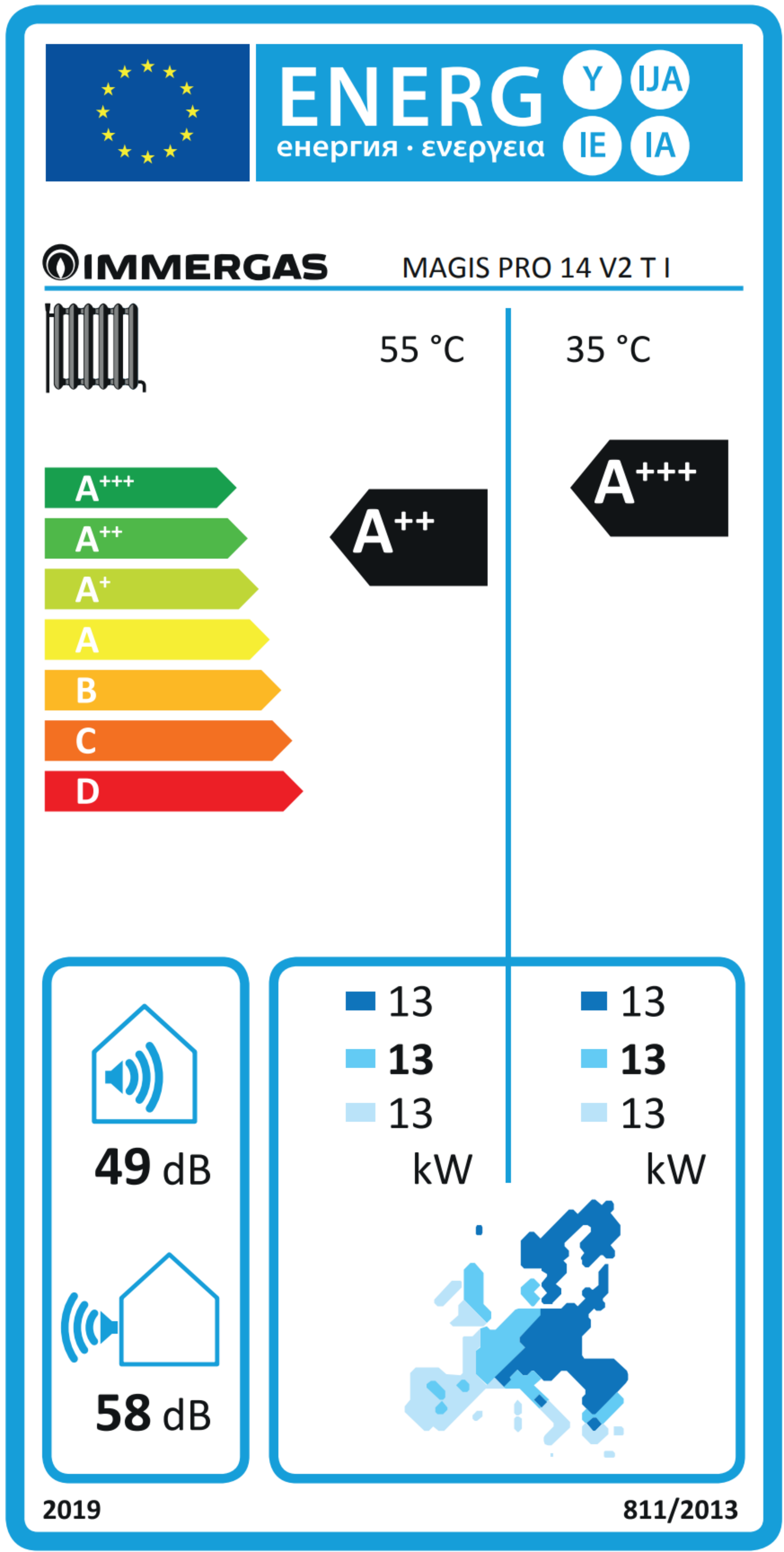 Klasa ErP dla c.o. 35°C, klimat umiarkowany zgodnie z dyrektywą ErP (2019/125/WE)